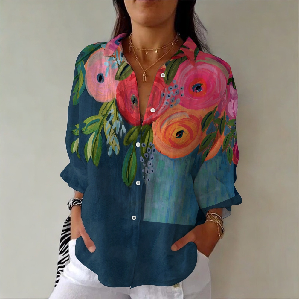 Women's Floral Art Print Casual Cotton Shirt