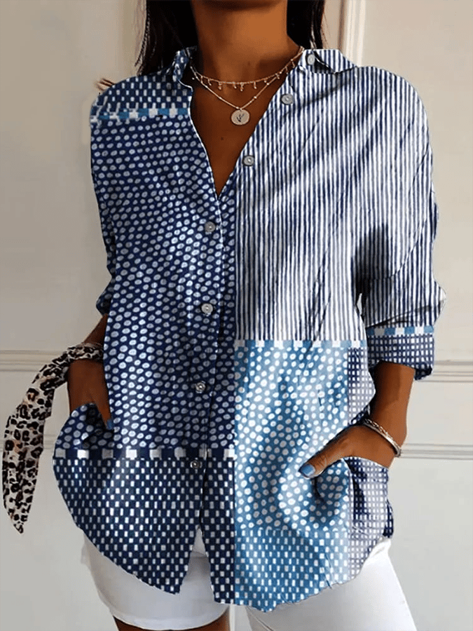 Women's Abstract Geometric Line Art Print Lapel Shirt