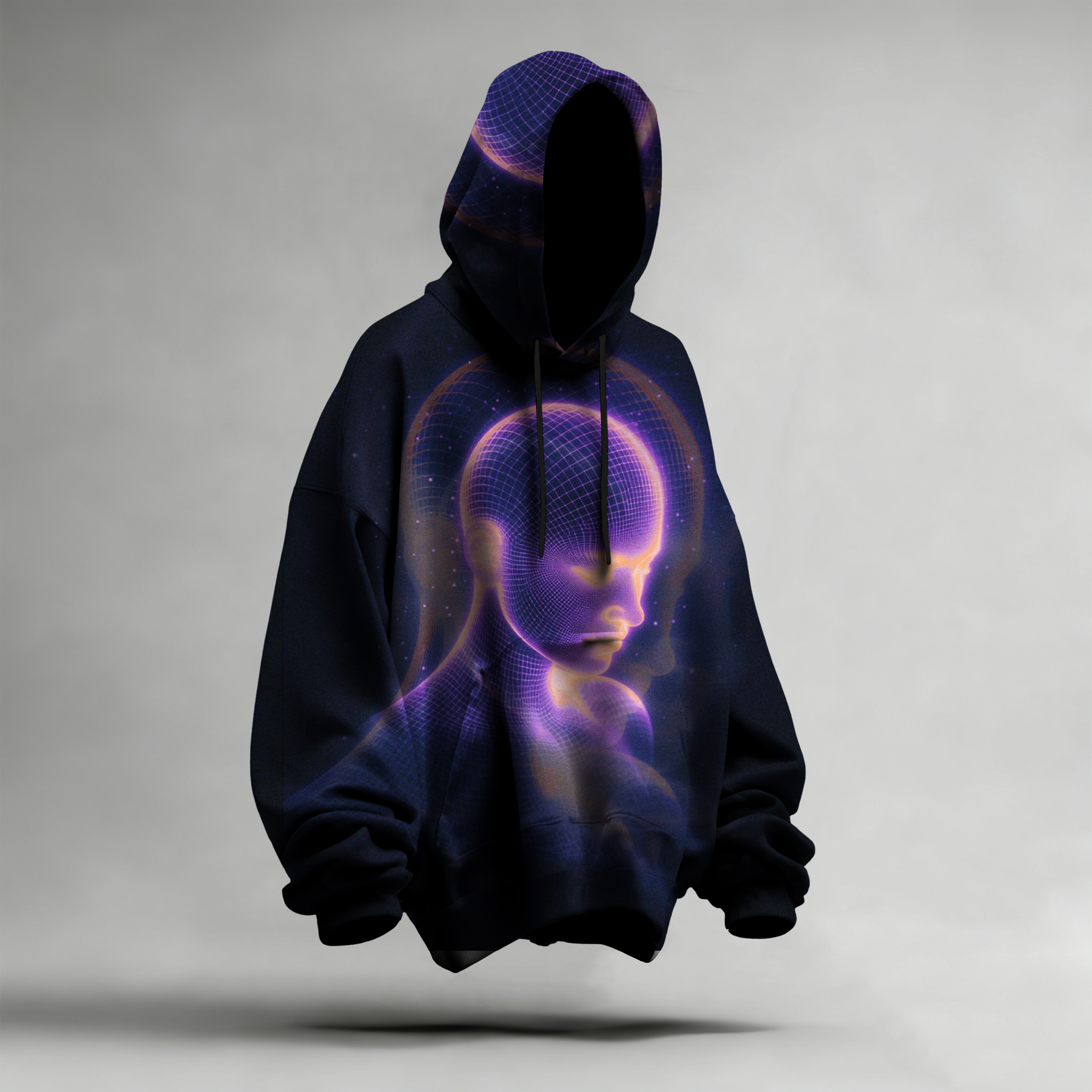Cyber Maitreya Buddha technology sense abstract art short-sleeved Hoodie