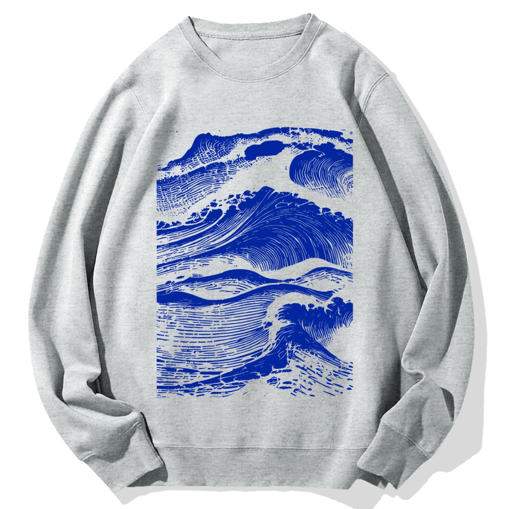 Vintage Japanese Wave Printed Cotton Sweatshirt