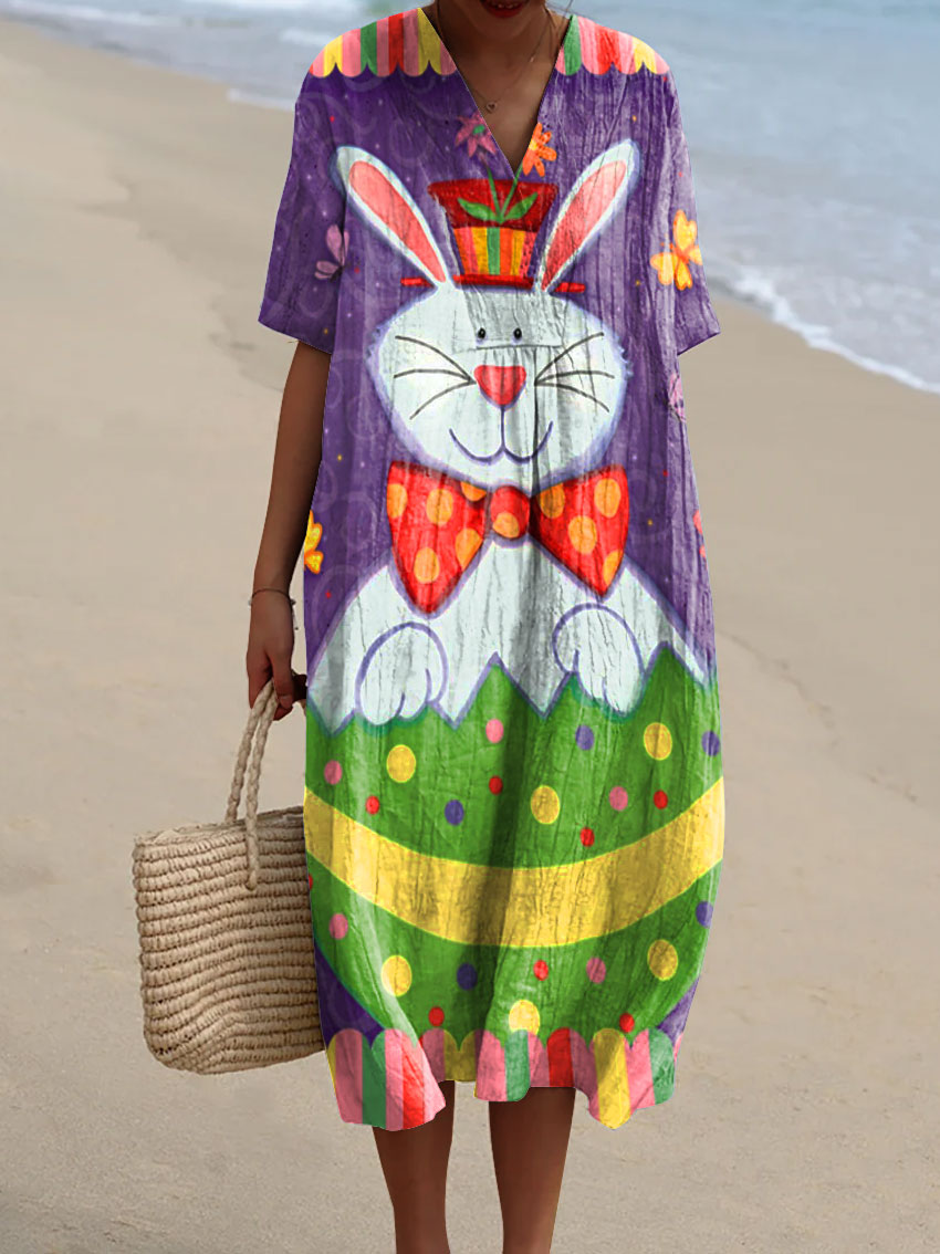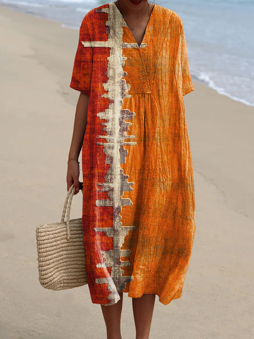 Women's Geometric Pattern Art Print Casual Cotton And Linen Dress