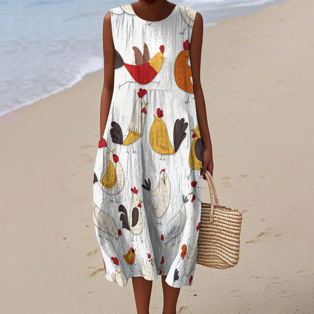 Women's Funny Chicken Art Print Pocket Cotton Dress