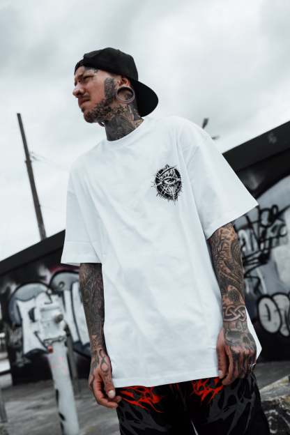 The sick „Attitude“ Tee by the legendary Matias Felipe is back. We've resurrected this brutal design in our „Hall of Fame“ collection, now gracing a white oversized tee. Showing her teeth like a primal declaration, and those teeth, my friend, represent untamed audacity—a fearless attitude that defies norms and challenges the status quo. Become the embodiment of boldness, rewriting the rules with every step you take.