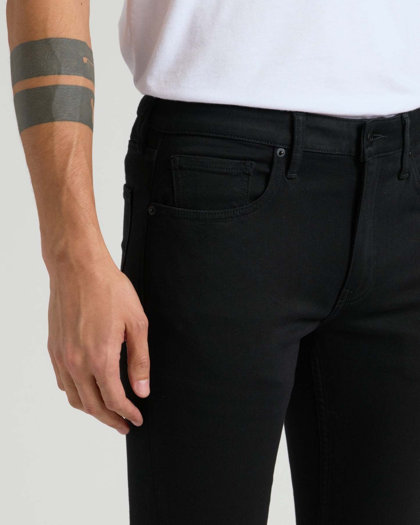 - Slim fit with tapered leg opening.