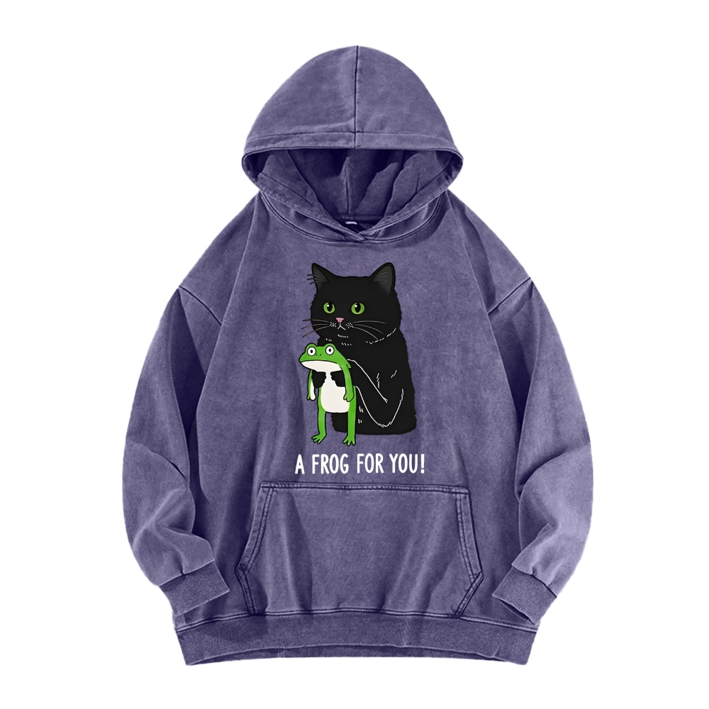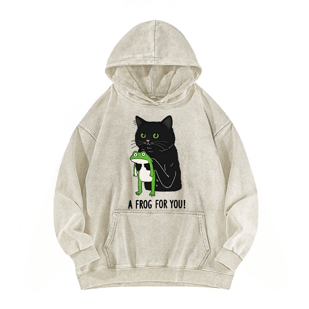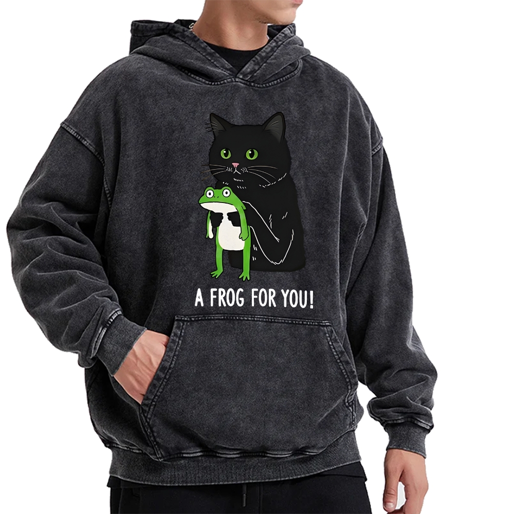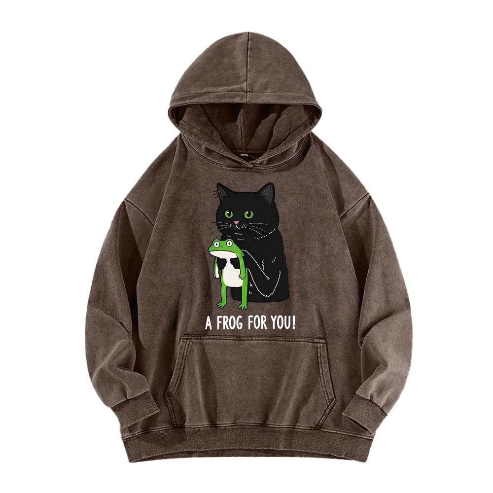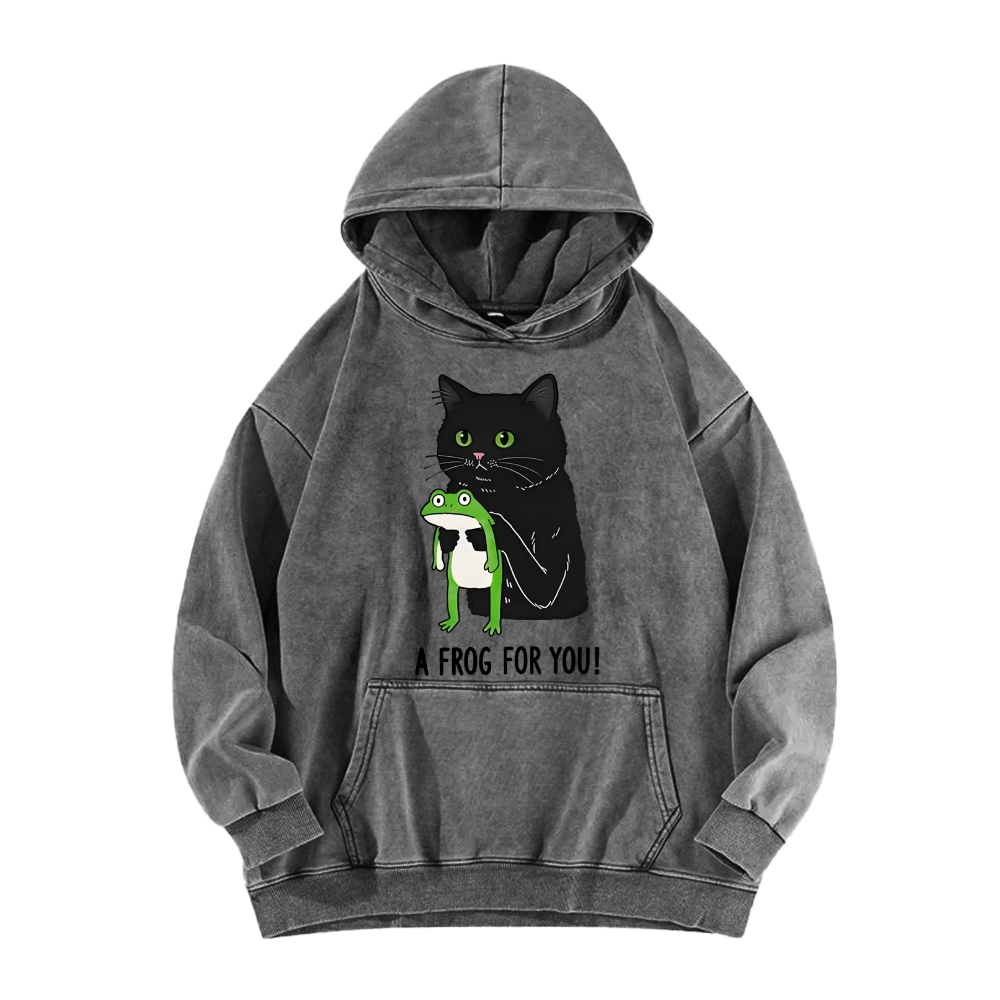 Cat Holding Frog Vintage Washed Hoodie