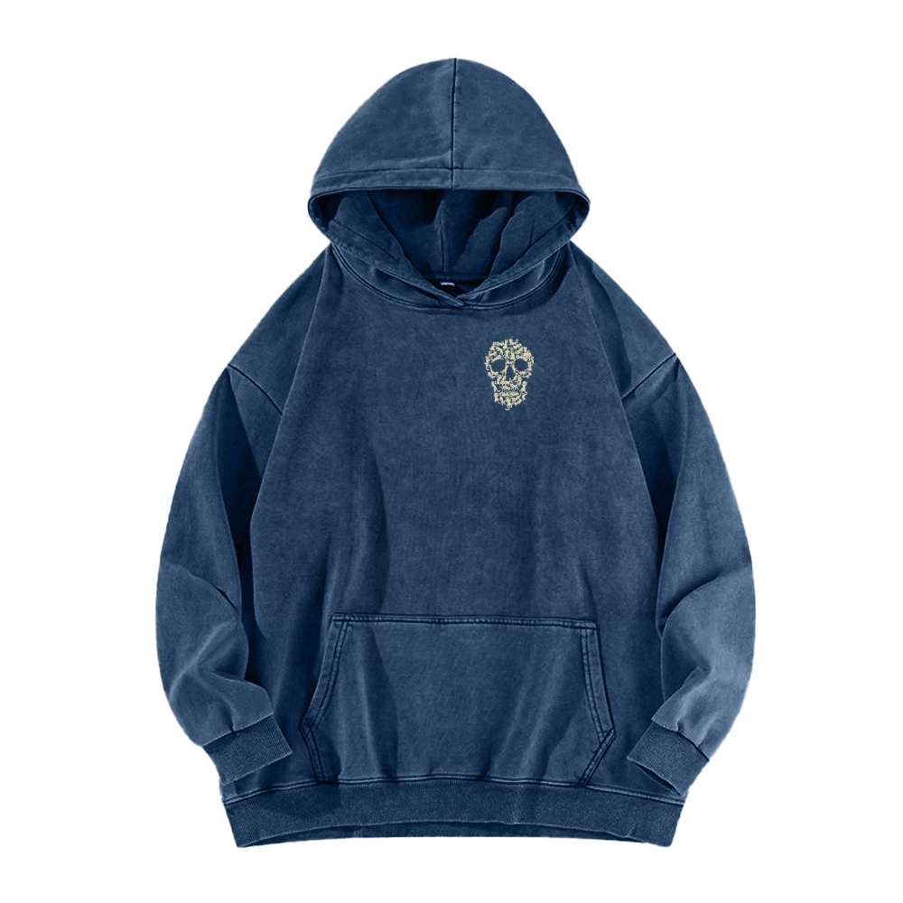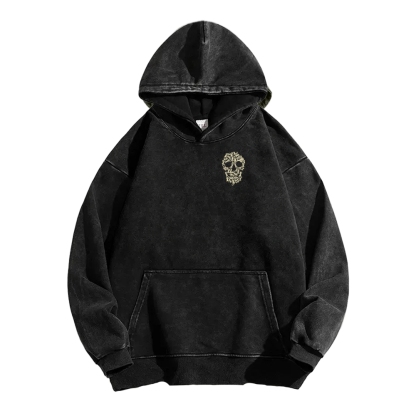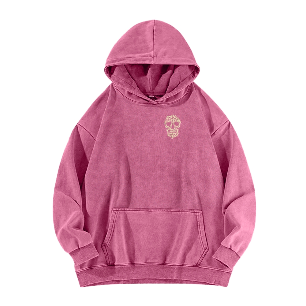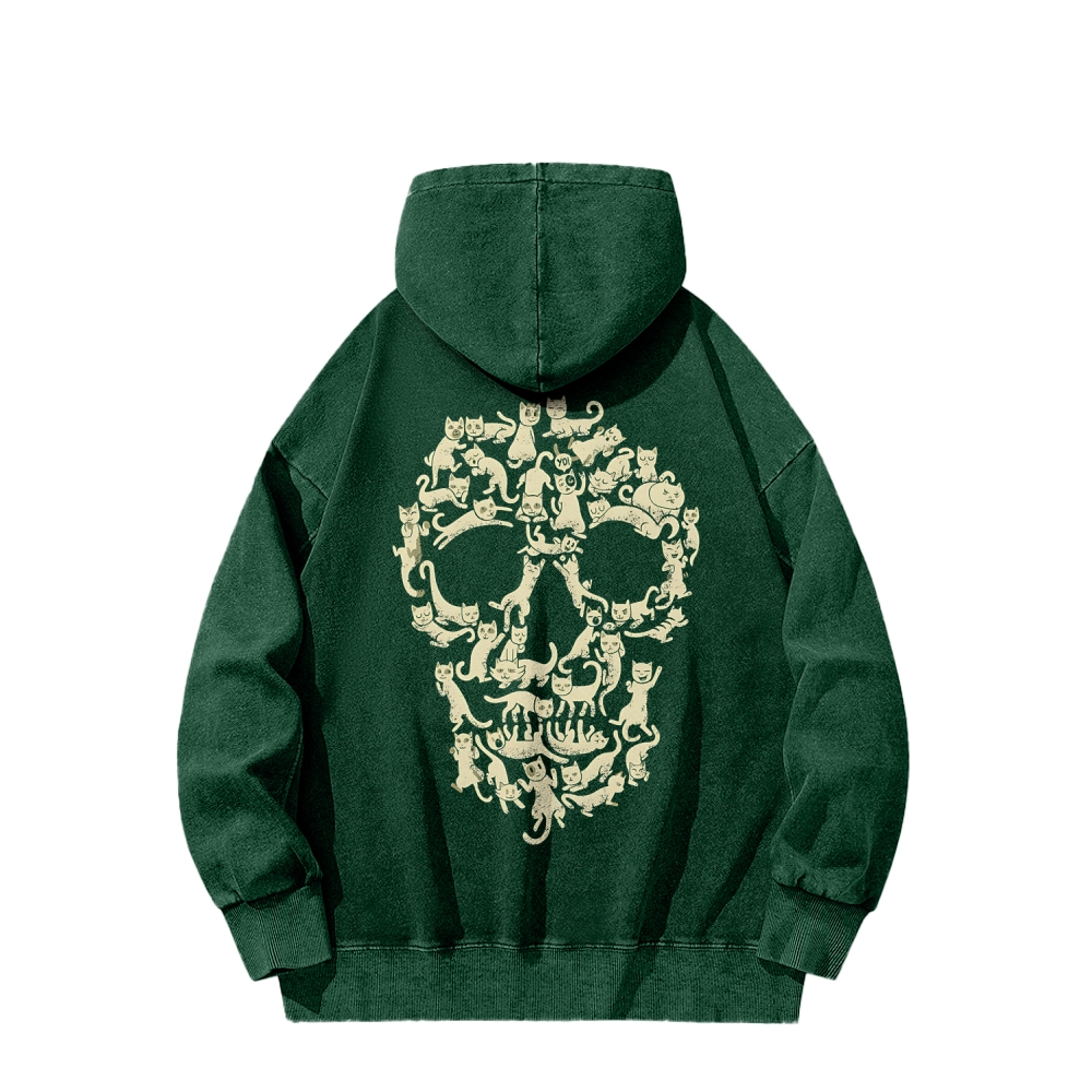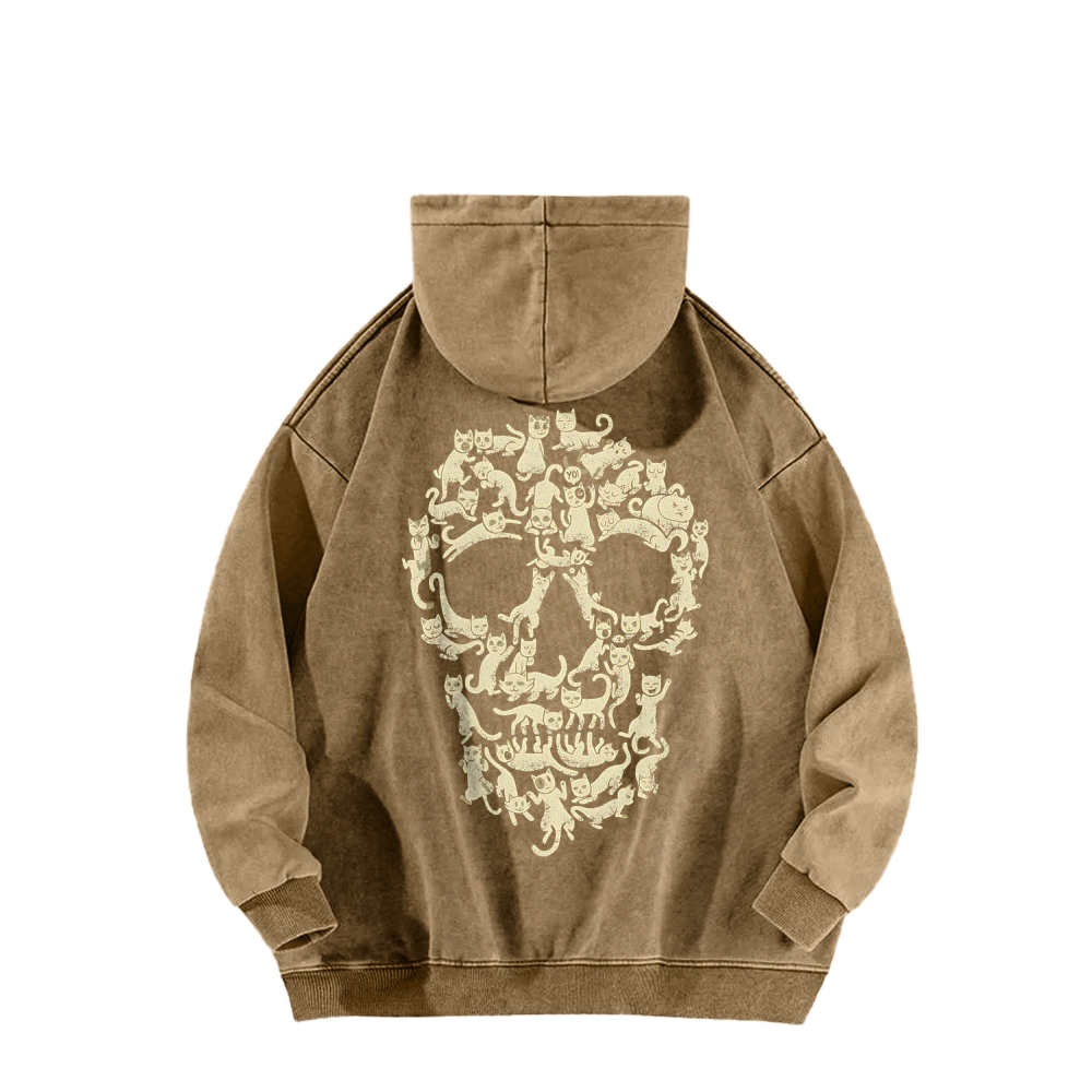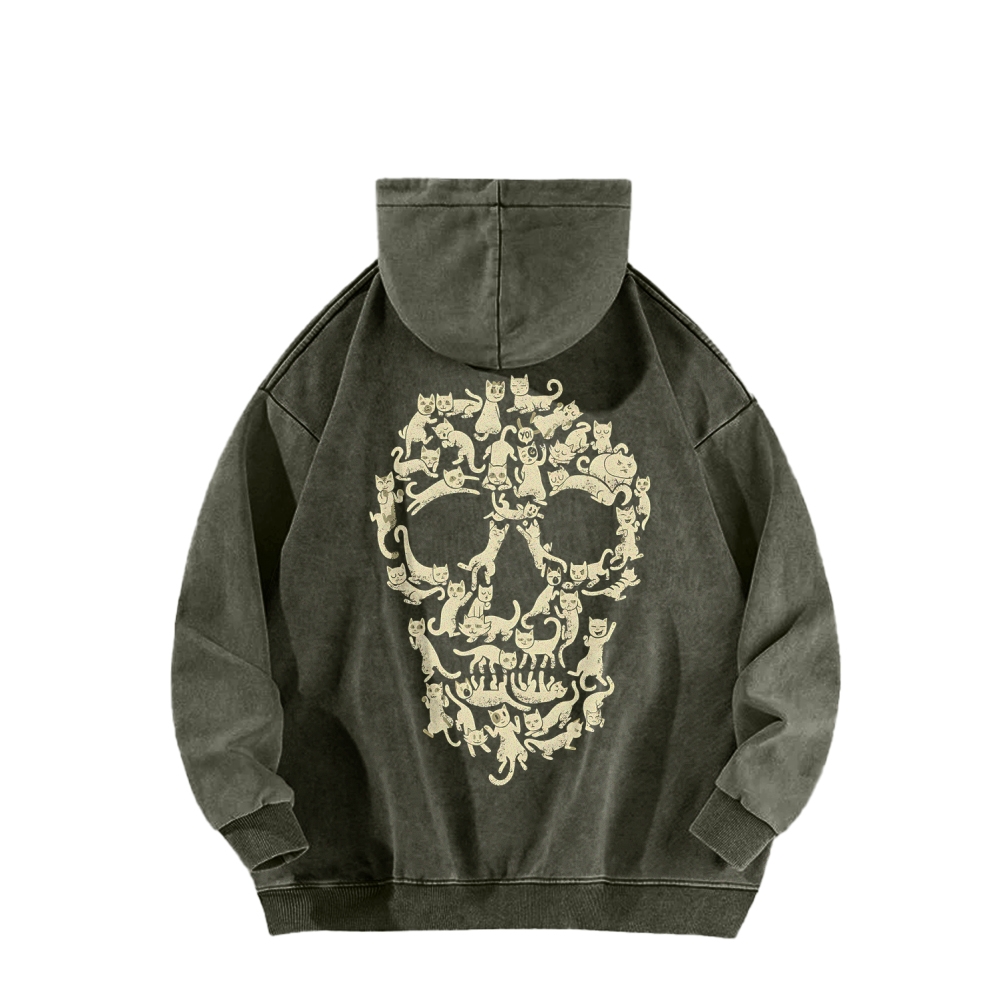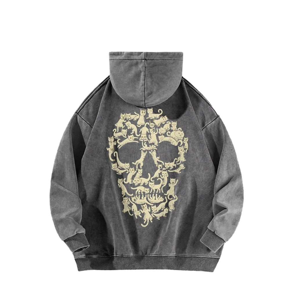 Cat Skull Front And Back Printing Vintage Washed Hoodie