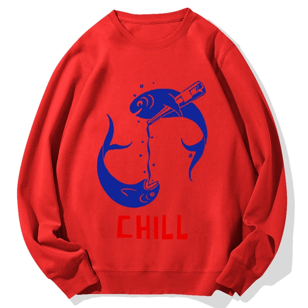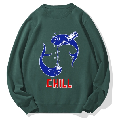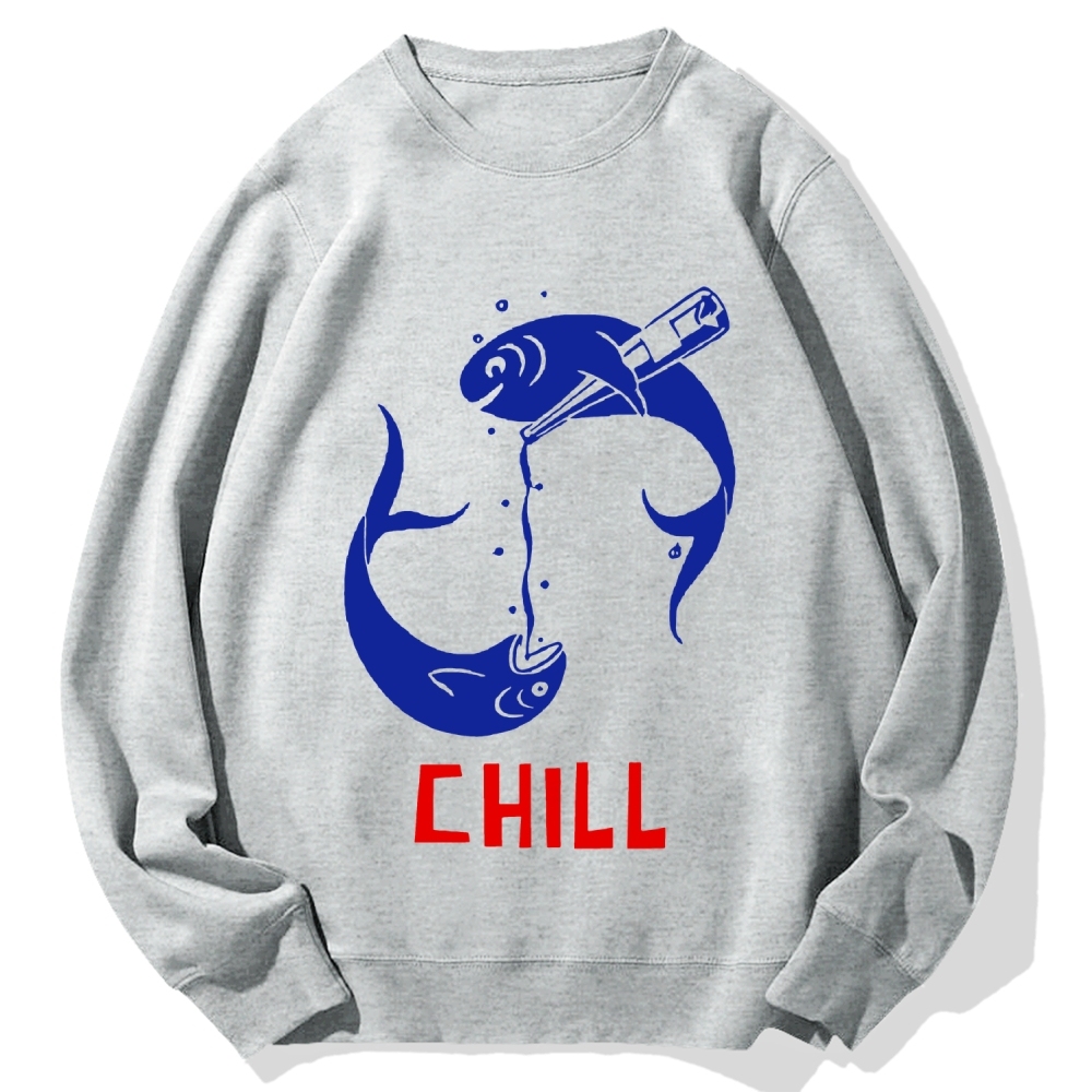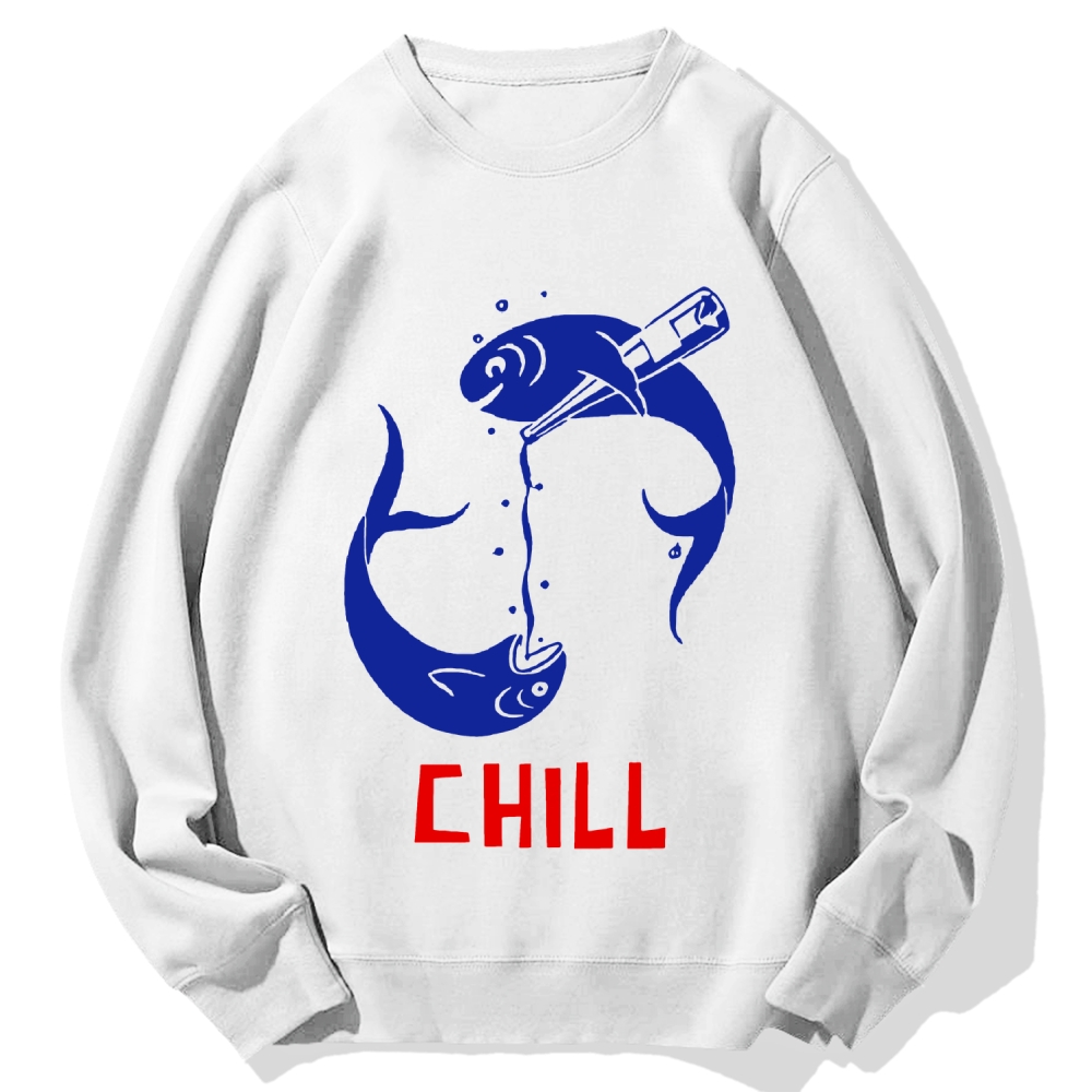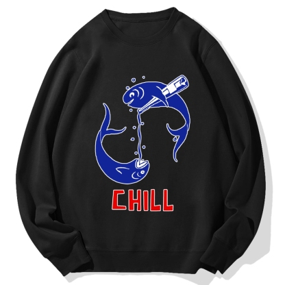 Chill Drinking Sardine Fish Printed Cotton Sweatshirt