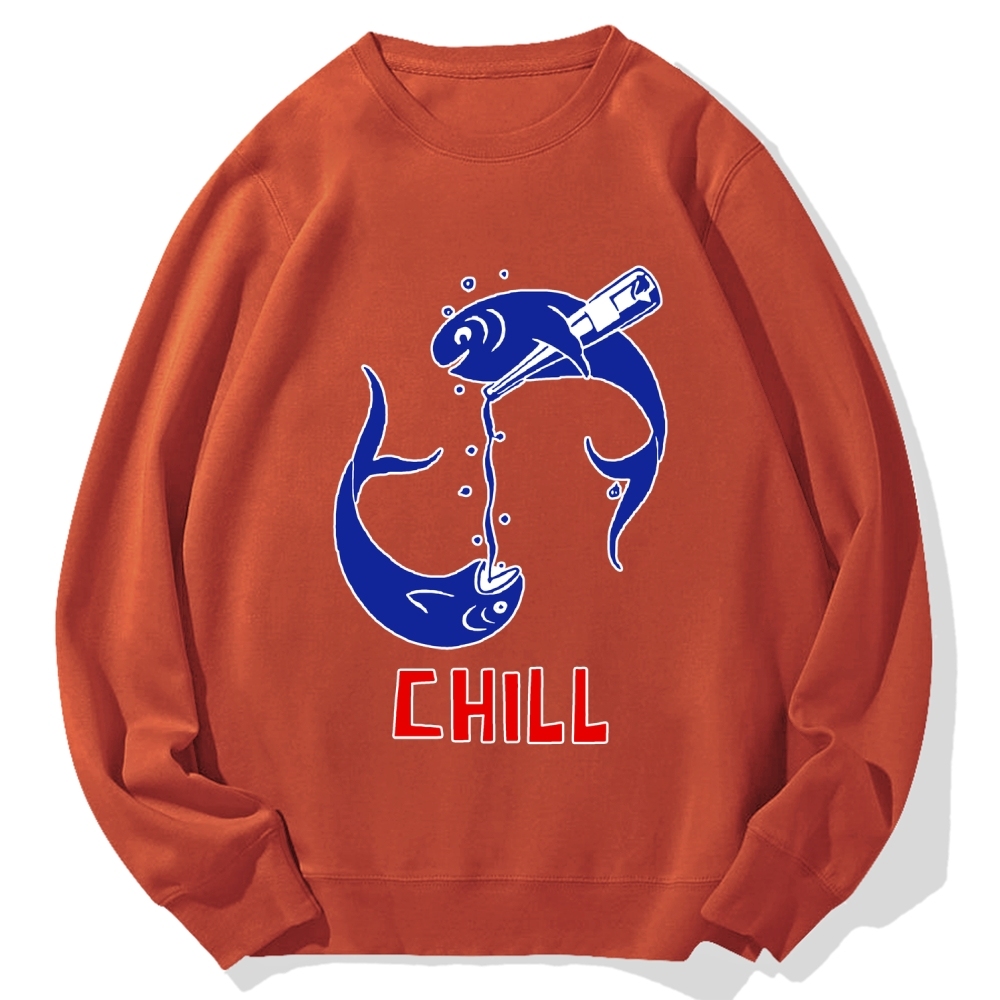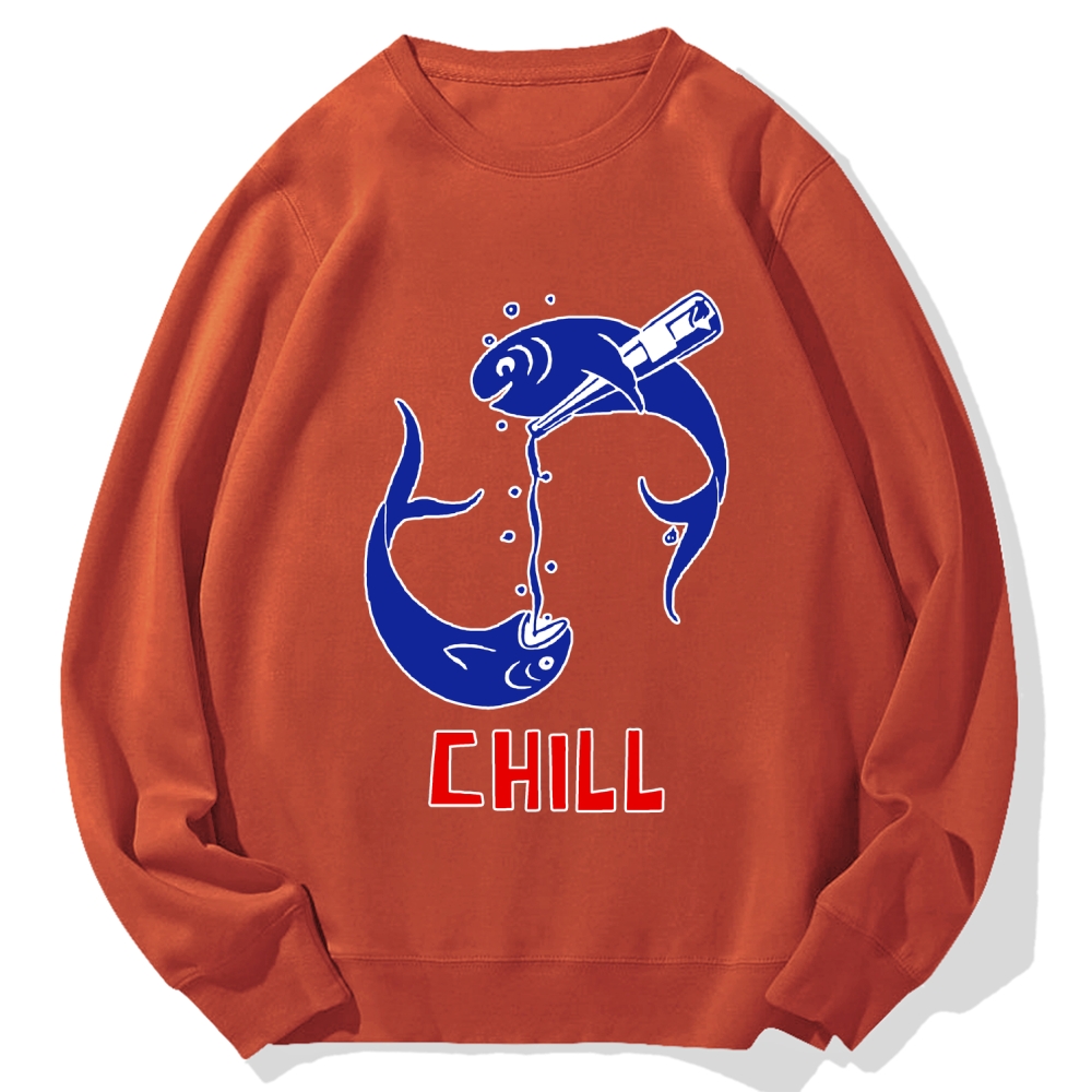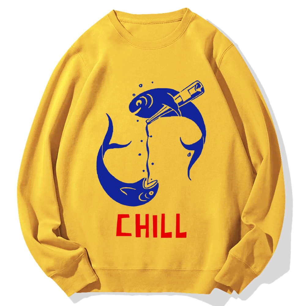 Chill Drinking Sardine Fish Printed Cotton Sweatshirt