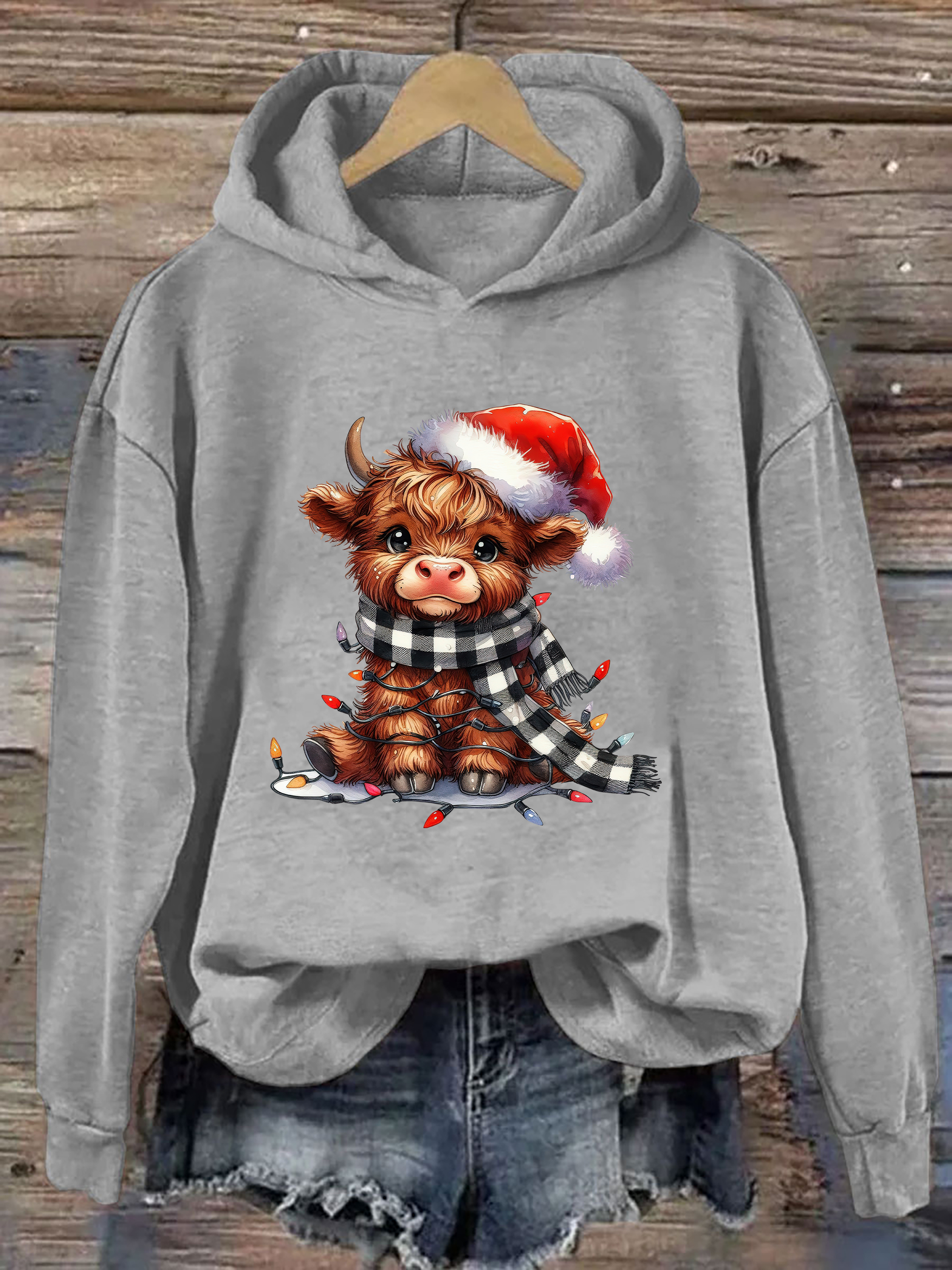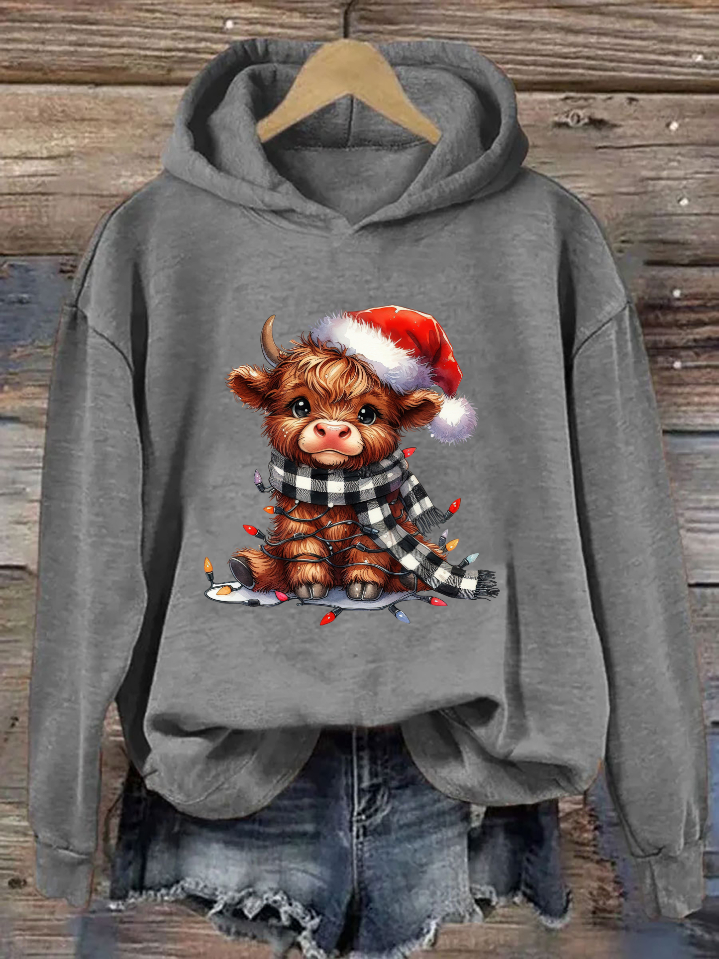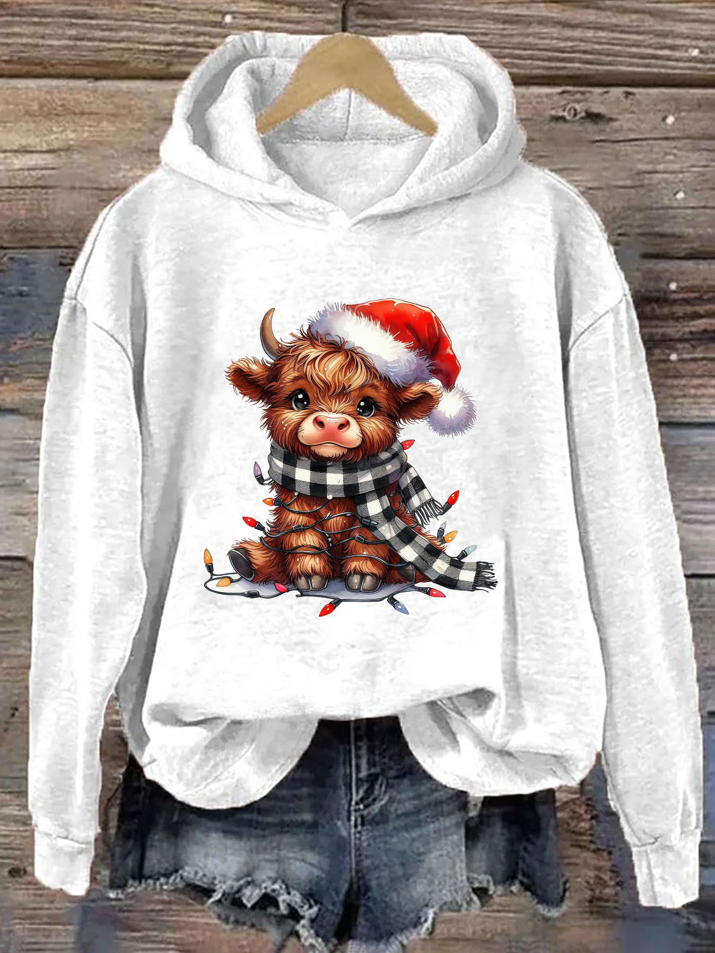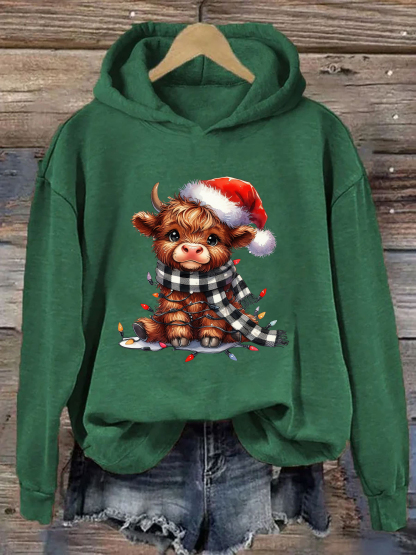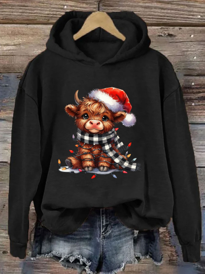 Christmas Lights Highland Cow Hoodie