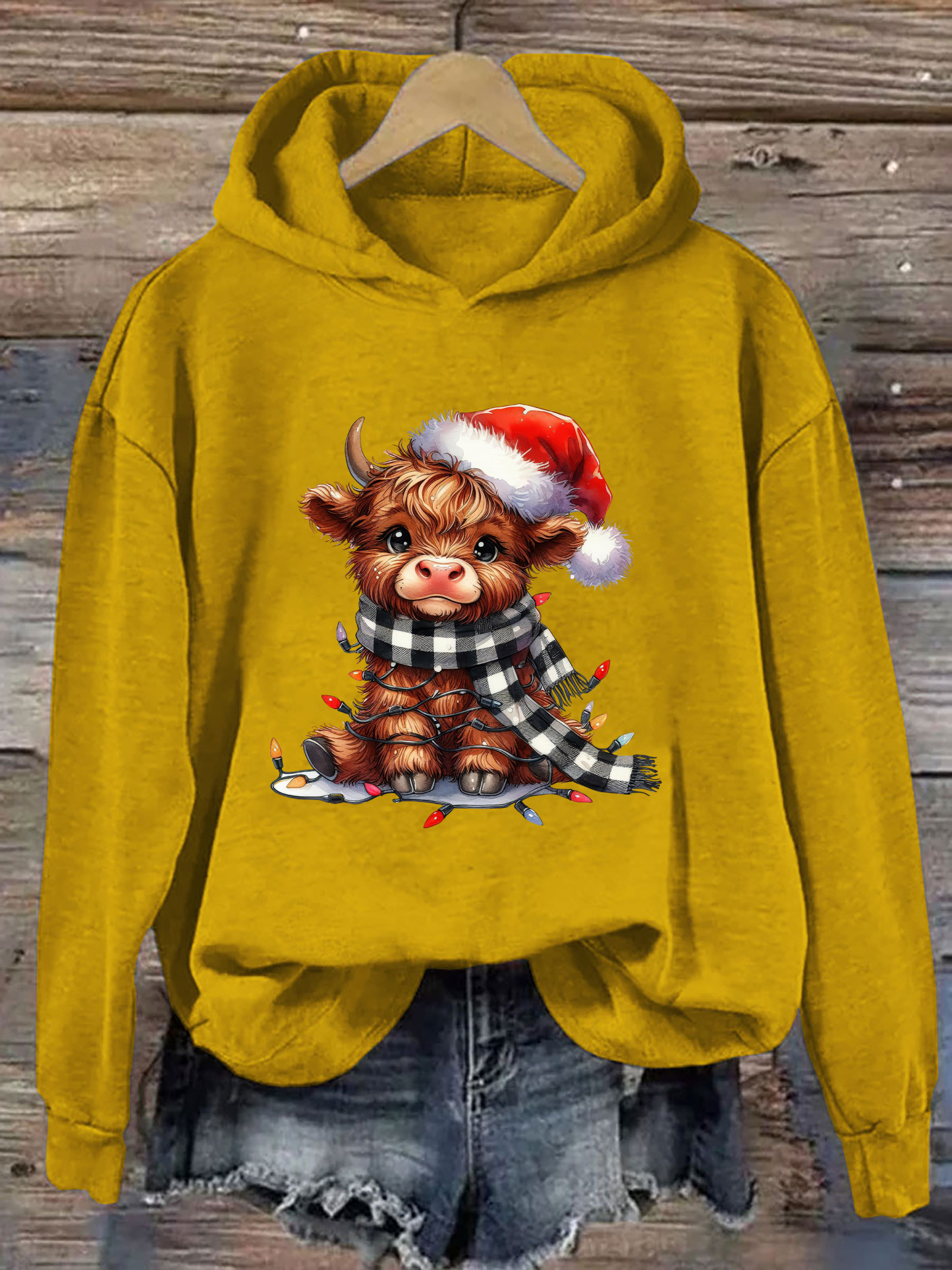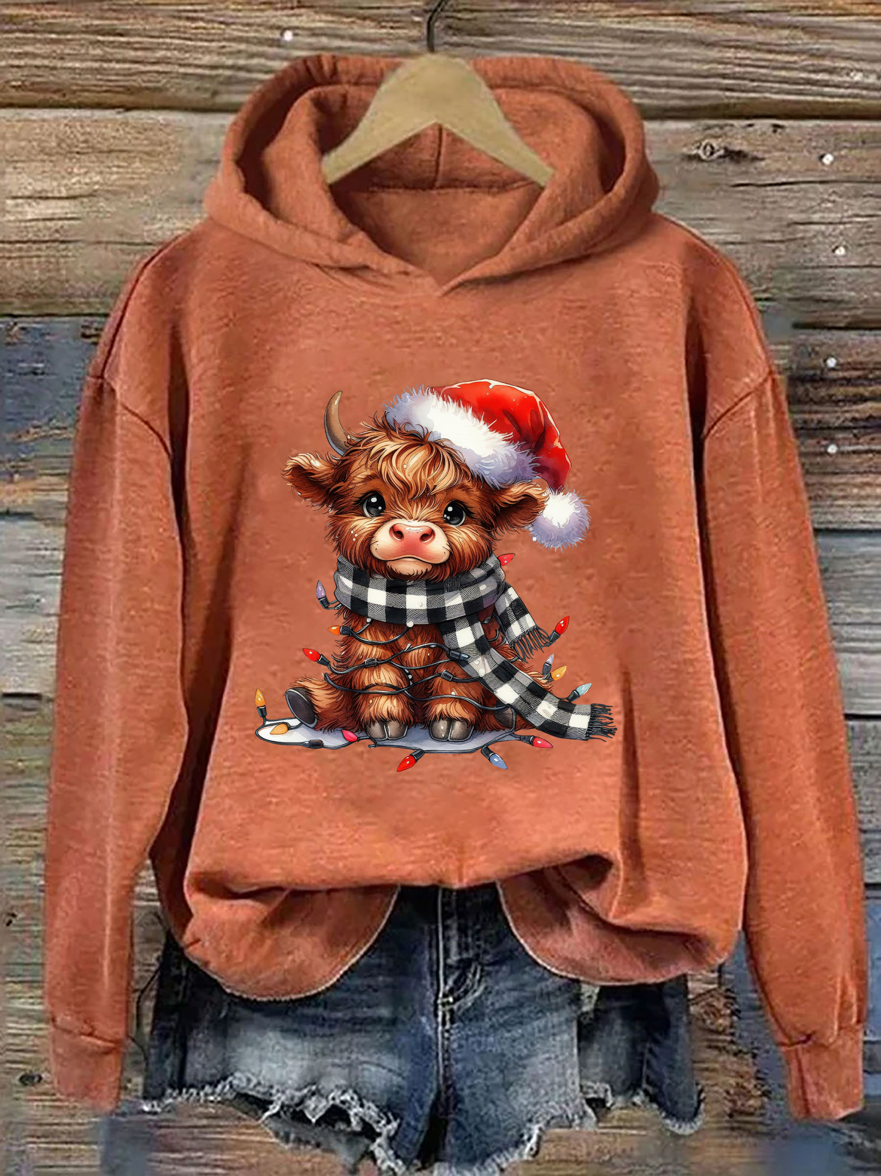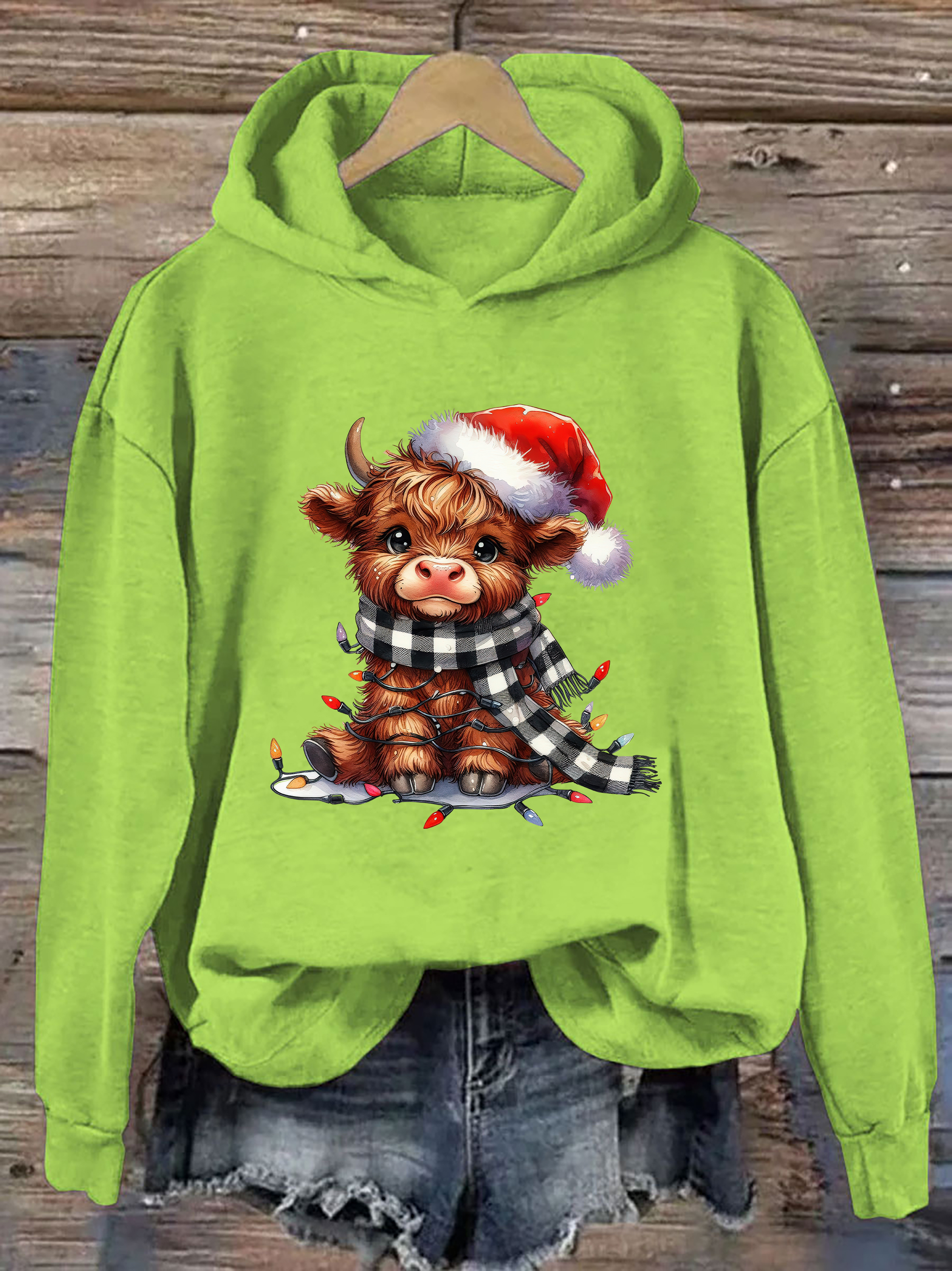 Christmas Lights Highland Cow Hoodie