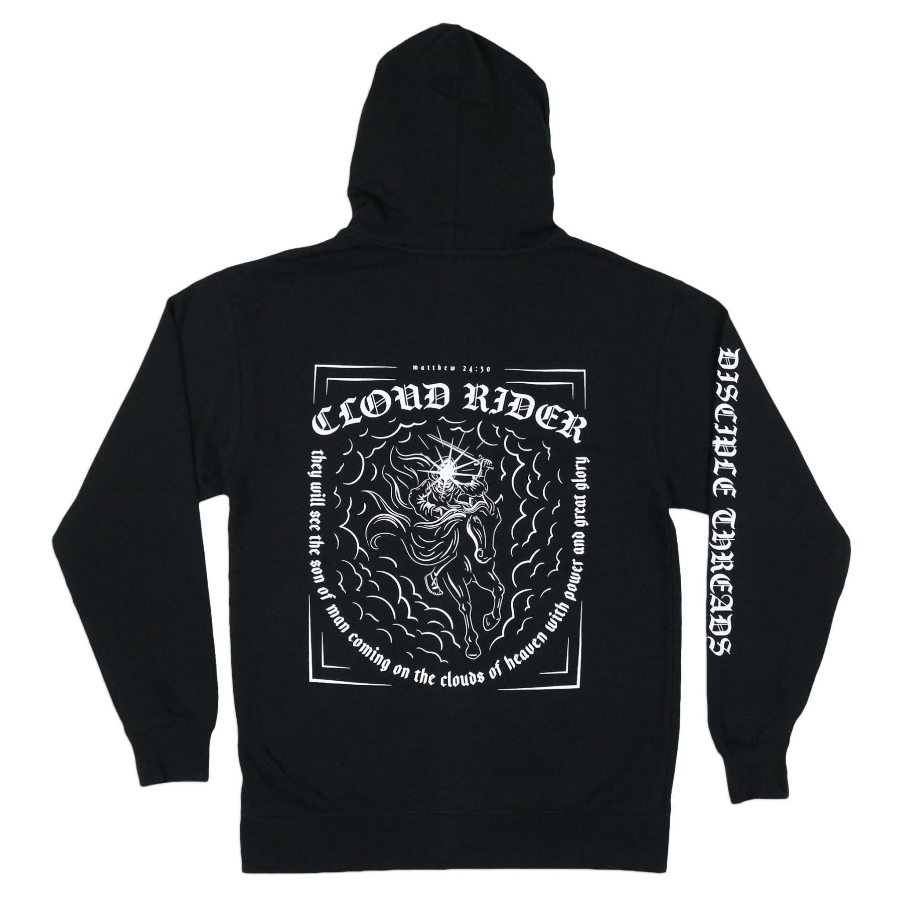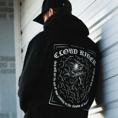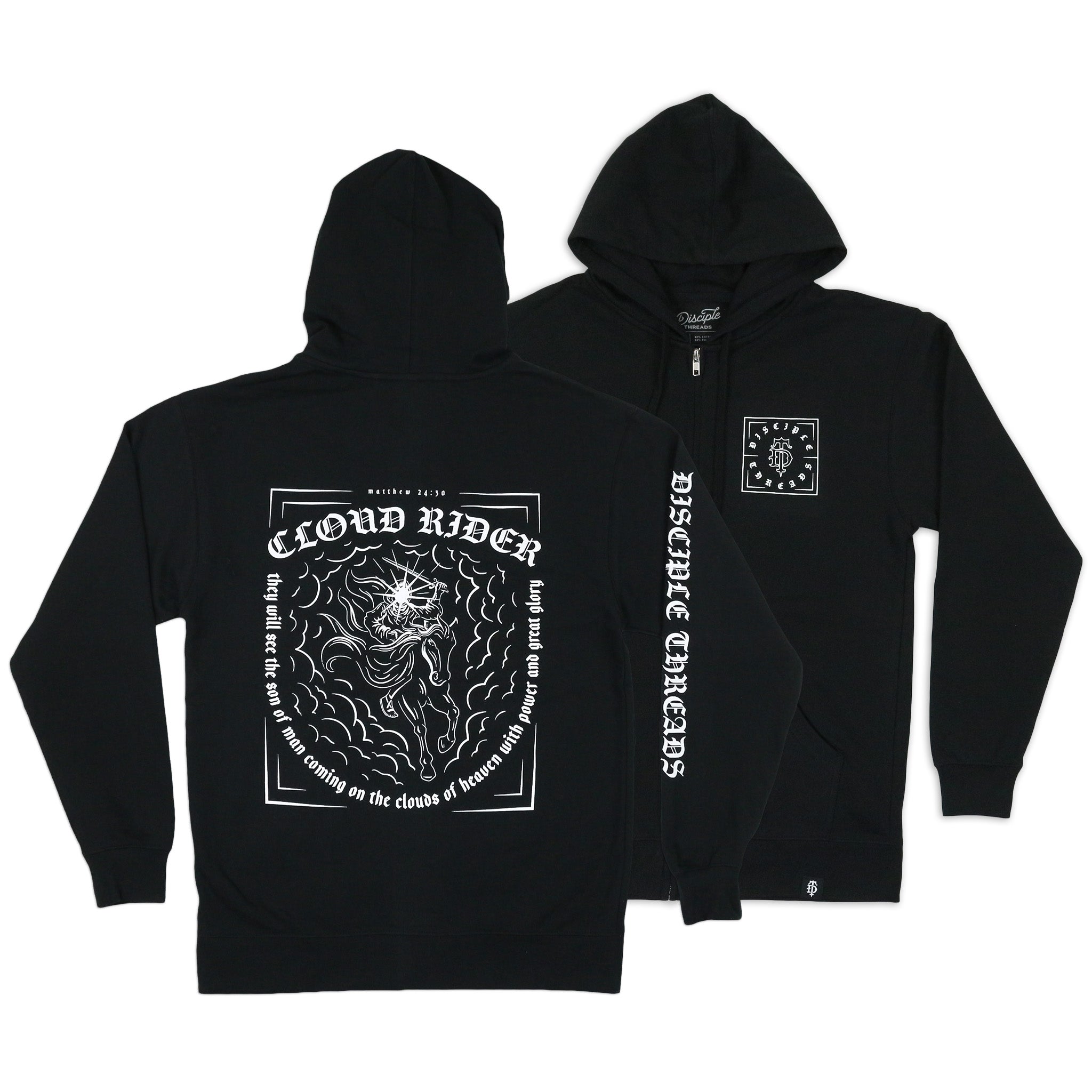 This zip hoodie design was inspired by the awesome descriptions of the return of our Lord and Savior, Jesus Christ. "...and they will see the Son of Man coming on the clouds of heaven with power and great glory." Matthew 24:30