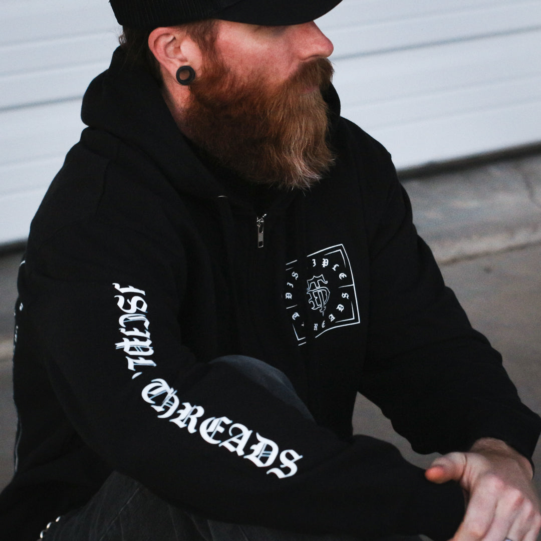 - Premium black zip-up hoodie