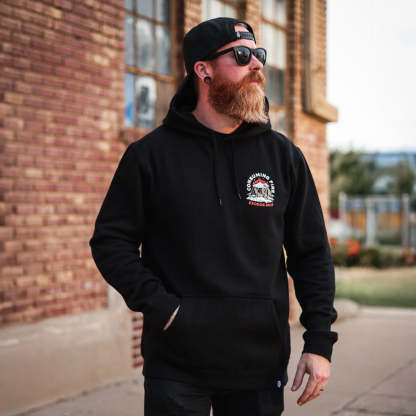 - Premium black pullover hoodie