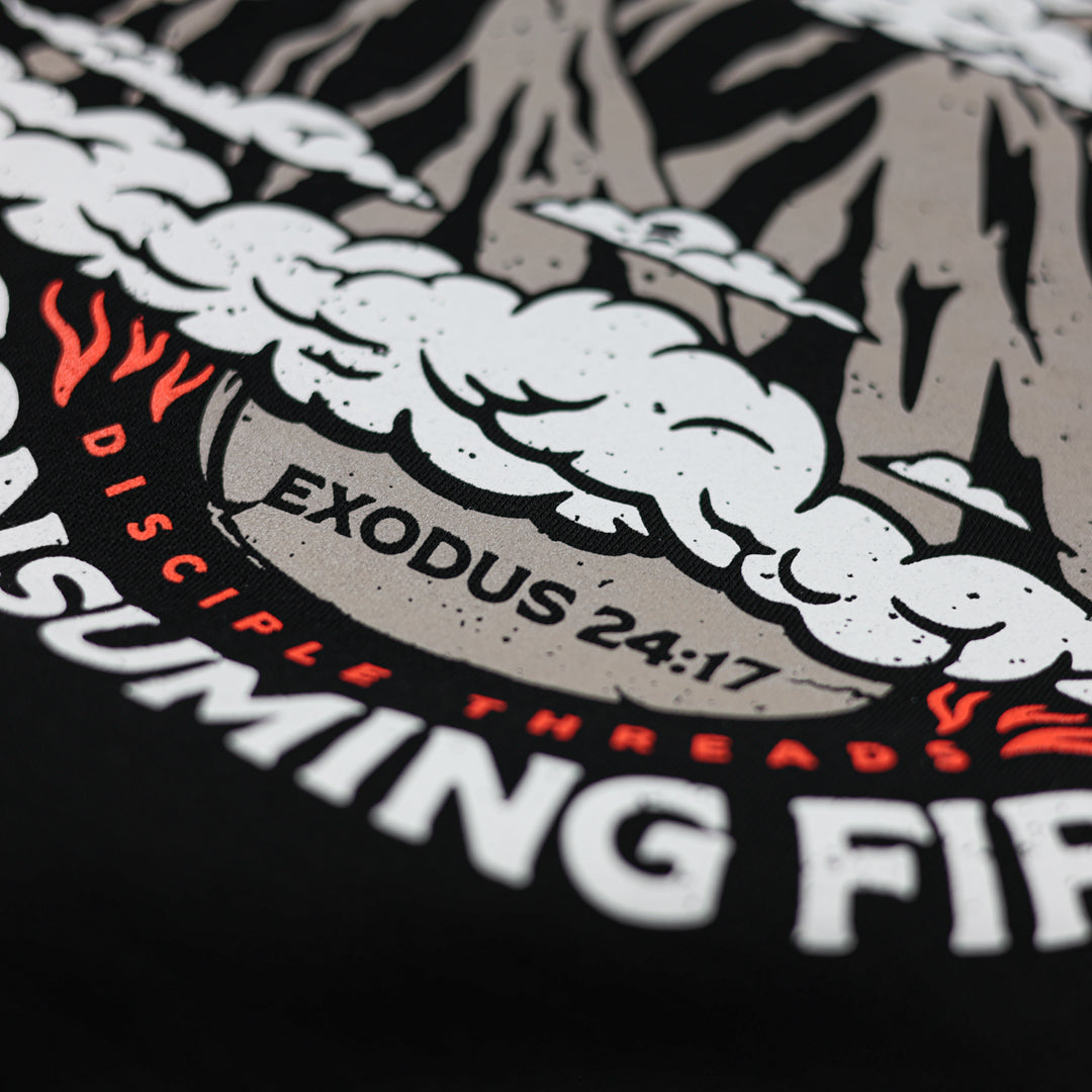 Inspired by Exodus 24:17, this design reflects the raw power and presence of God—like a consuming fire. Bold, hand-drawn artwork captures the awe and reverence of standing before Him. Printed on ultra-soft, stone-washed tees with a perfectly worn, vintage feel. Made for those who fear, honor, and worship the Almighty.
