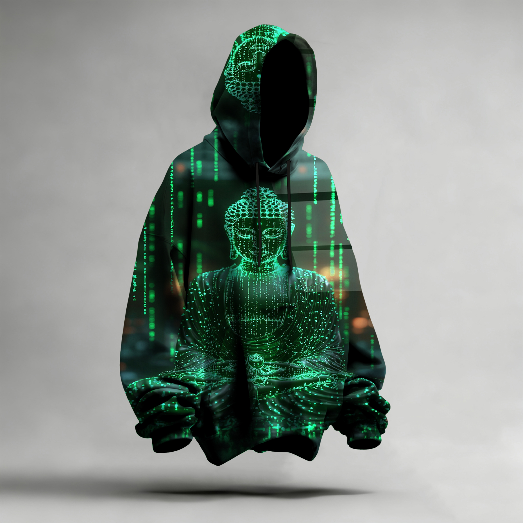 Cyber Maitreya Buddha technology sense abstract art short-sleeved Hoodie