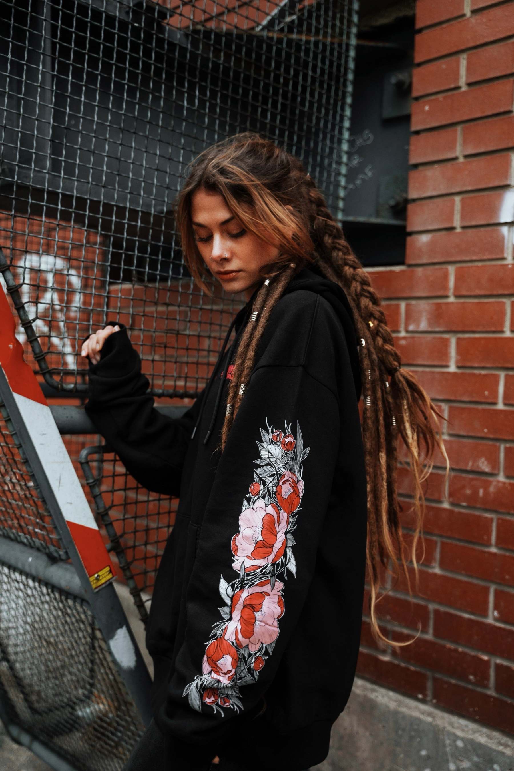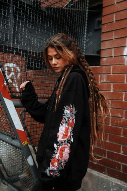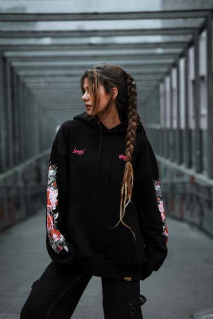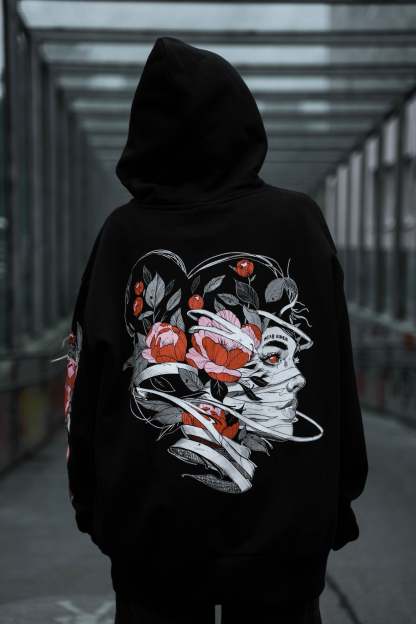 „Dead Bloom“ by the visionary Andrey Lukovnikov is returningto our „Hall of Fame“ collection on a bold black oversized fit. This design invites you to explore the beauty within decay. „Dead Bloom“ is a paradoxical masterpiece, capturing the allure of darkness and the twisted elegance of beautiful petals. It beautifully encapsulates the cycle of life, where even in the midst of darkness, a haunting beauty emerges.
