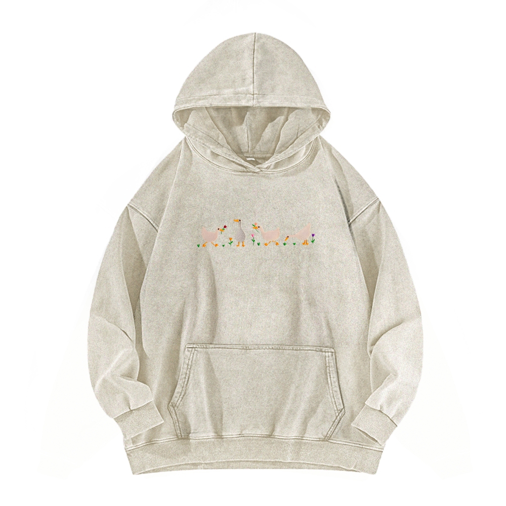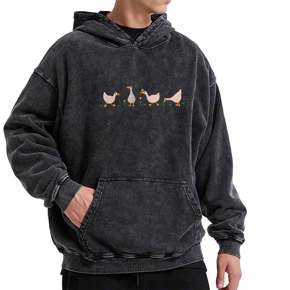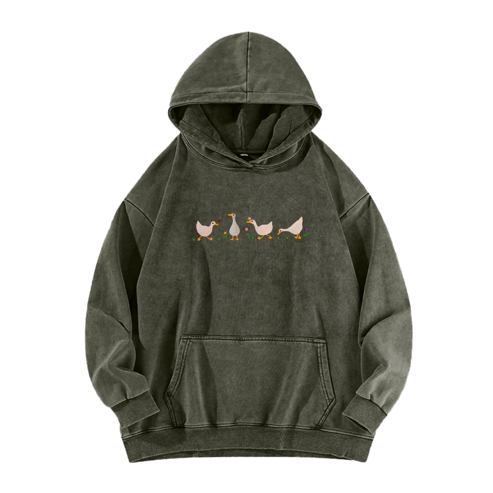 Embroidered Ducks And Geese Vintage Washed Hoodie