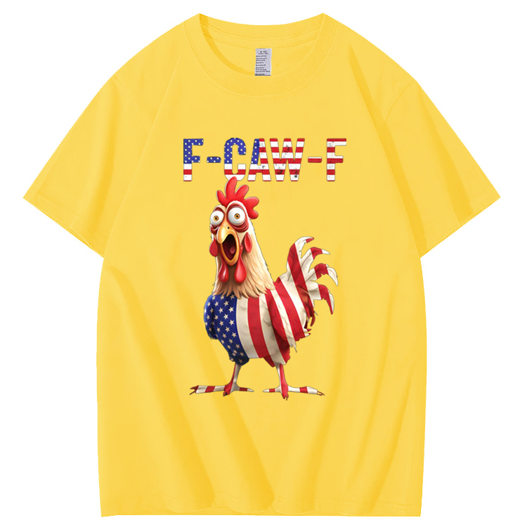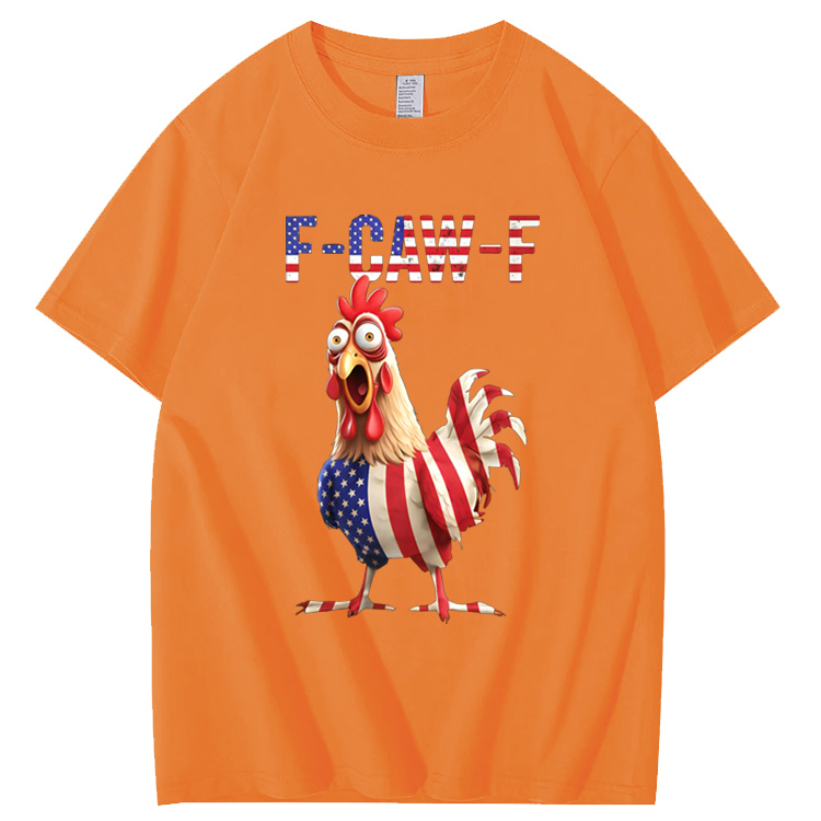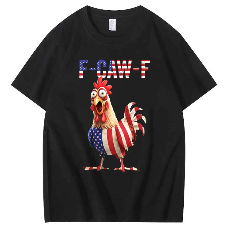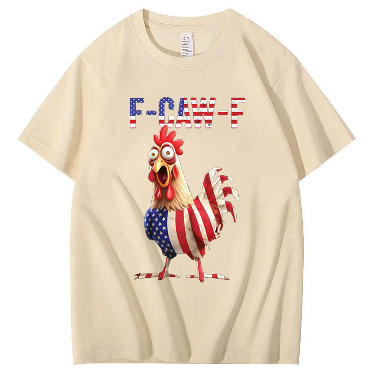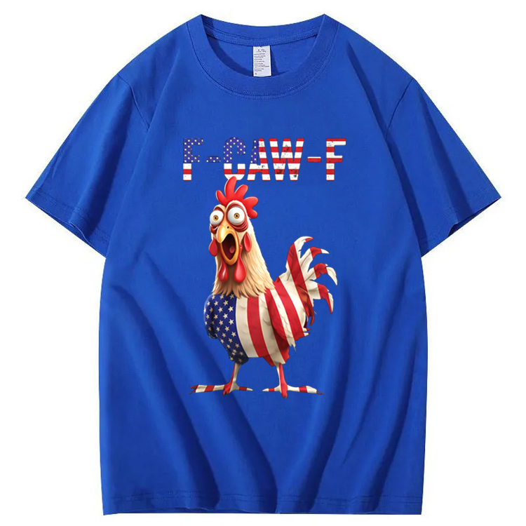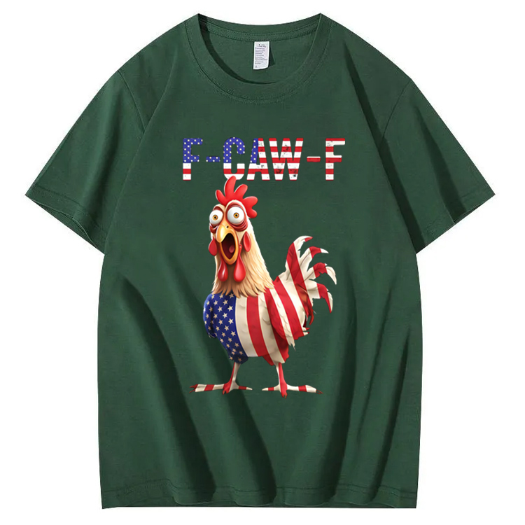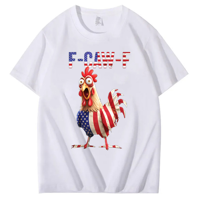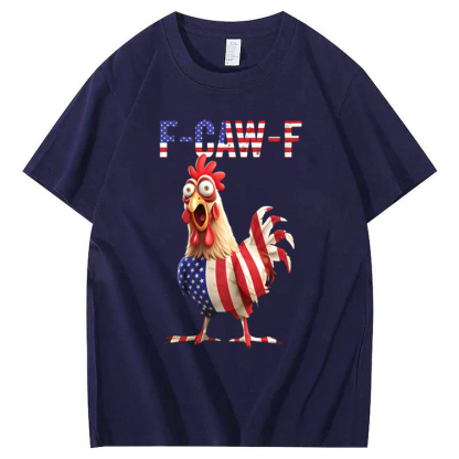 F-Caw-F America Flag Chicken Pattern100% Cotton T-Shirt