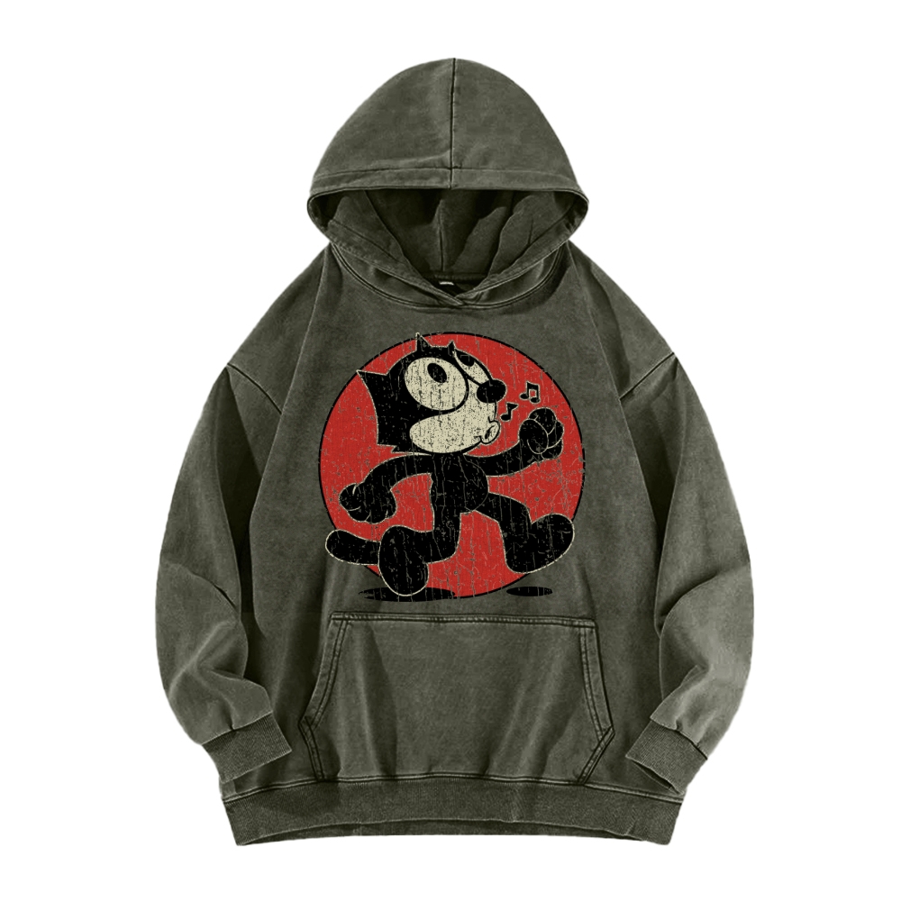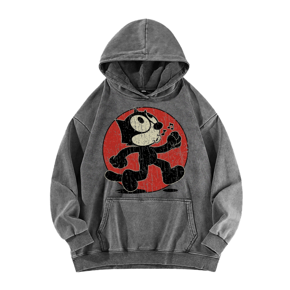 Funny Black Cat Vintage Washed Hoodie