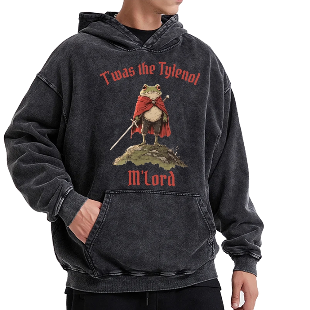 Funny Medieval Frog Knight twas the Tism M'lord Meme Vintage Washed Hoodie