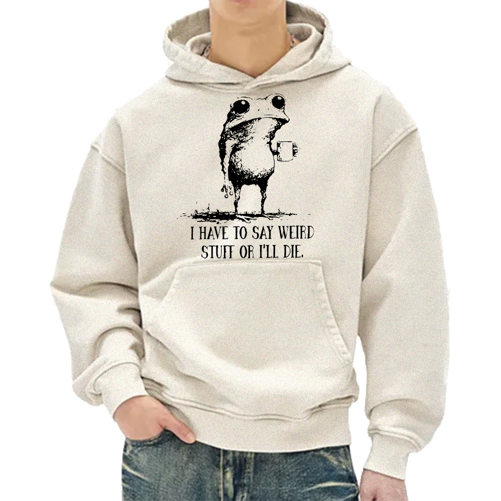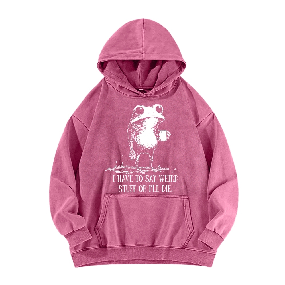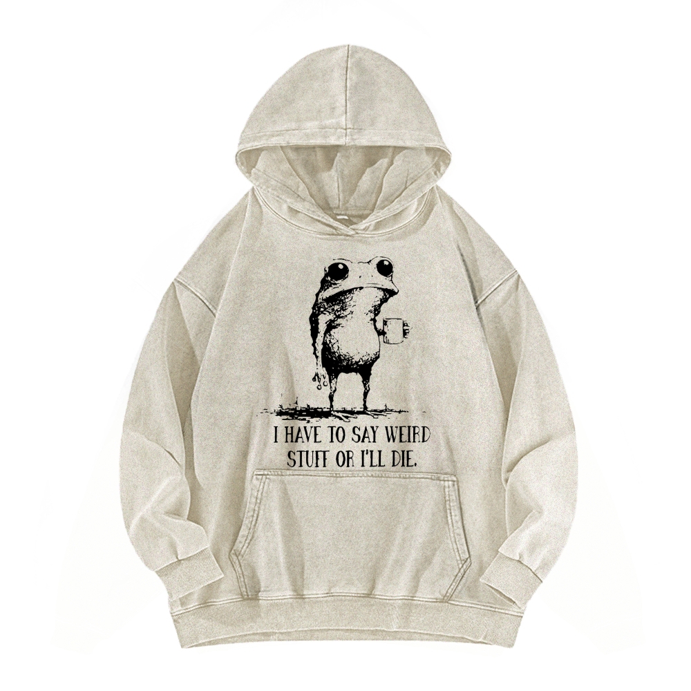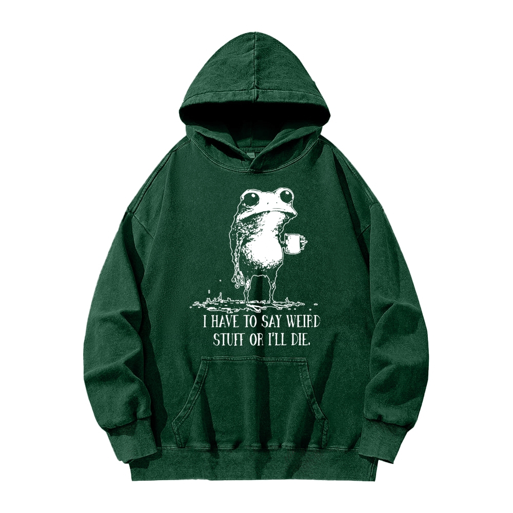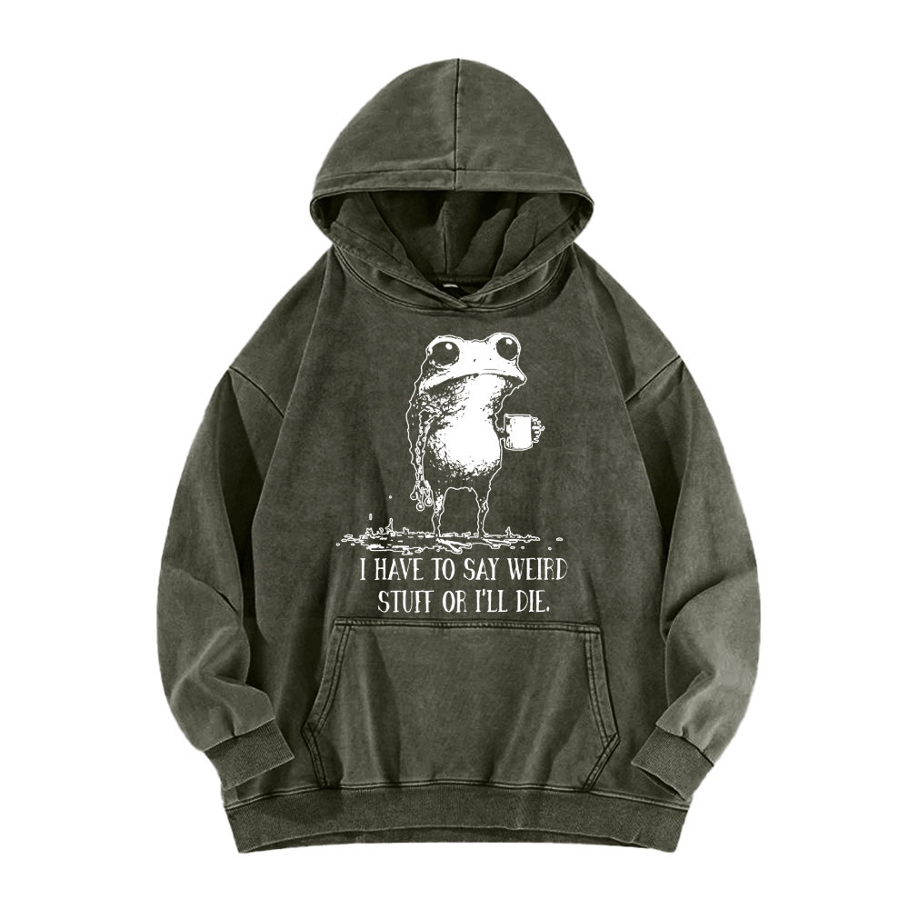 I Have To Say Something Weird Or I'll Die Frog Drinks Coffee Vintage Washed Hoodie