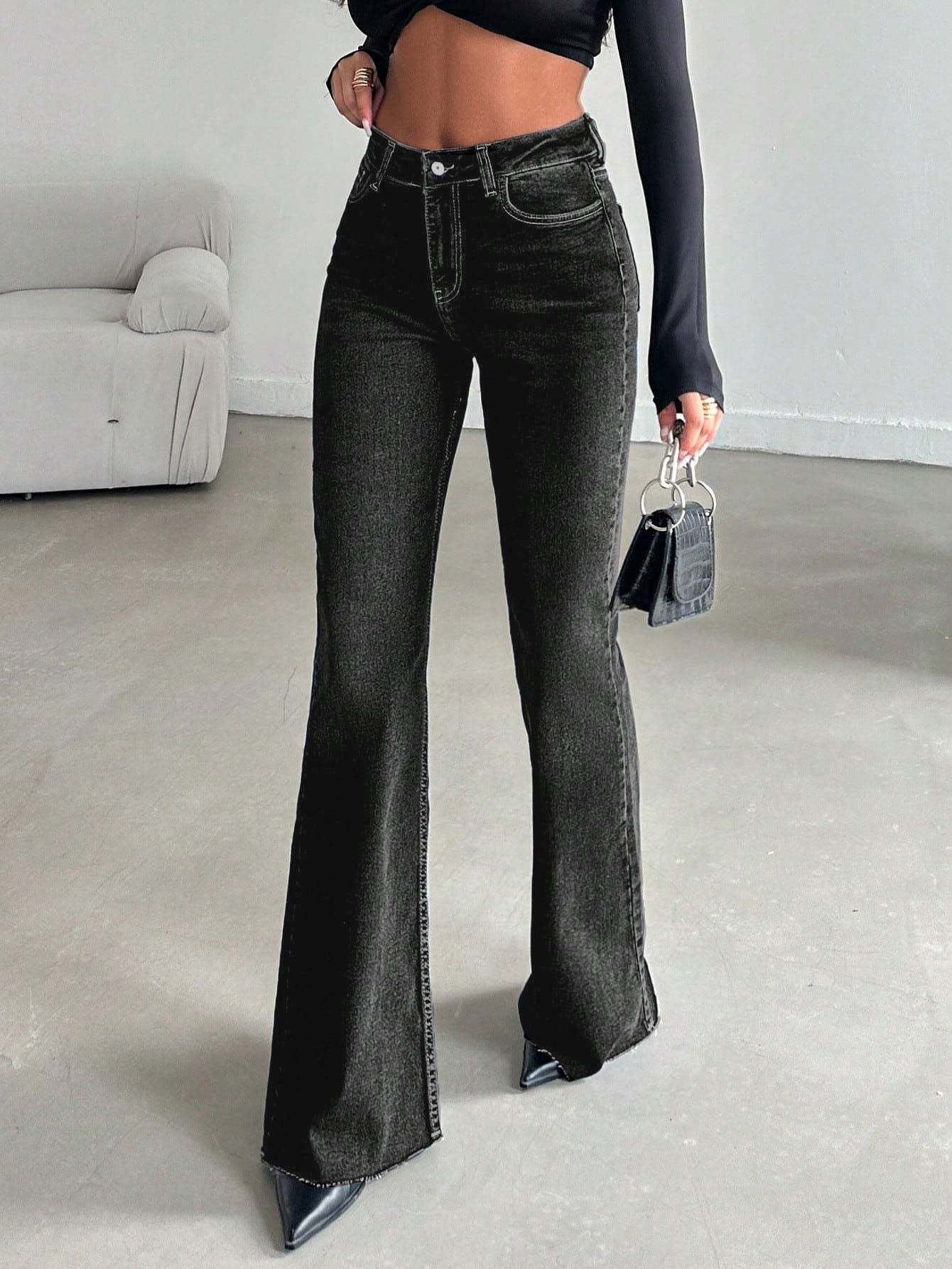 These Iconic Babe Raw Edge Bootcut Jeans are a must-have for any fashion aficionado. With their edgy raw edge detailing and flattering bootcut silhouette, these jeans will elevate your style game. Made from high-quality denim, they offer both comfort and durability. Perfect for any occasion.