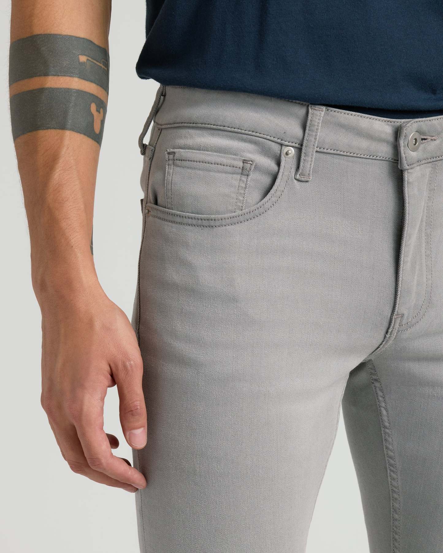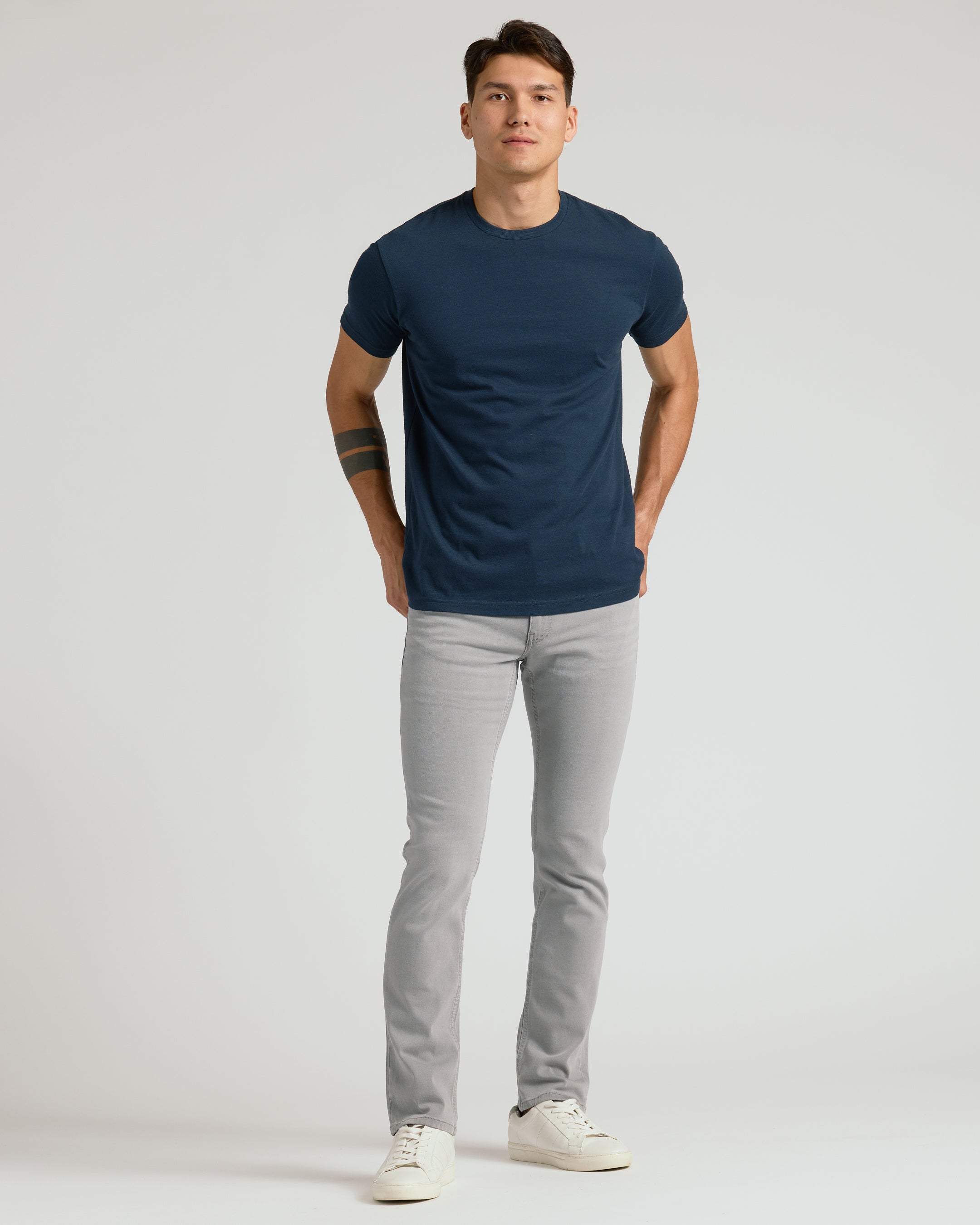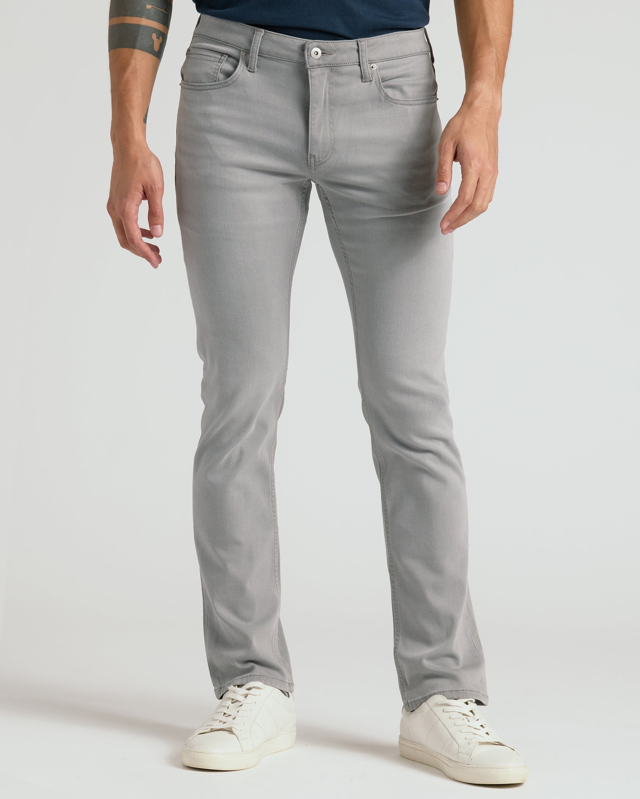 - Slim fit with tapered leg opening.
