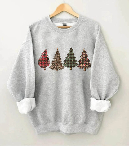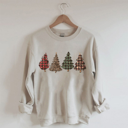 Plaid And Leopard Christmas Trees Sweatshirt