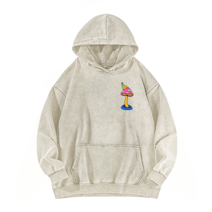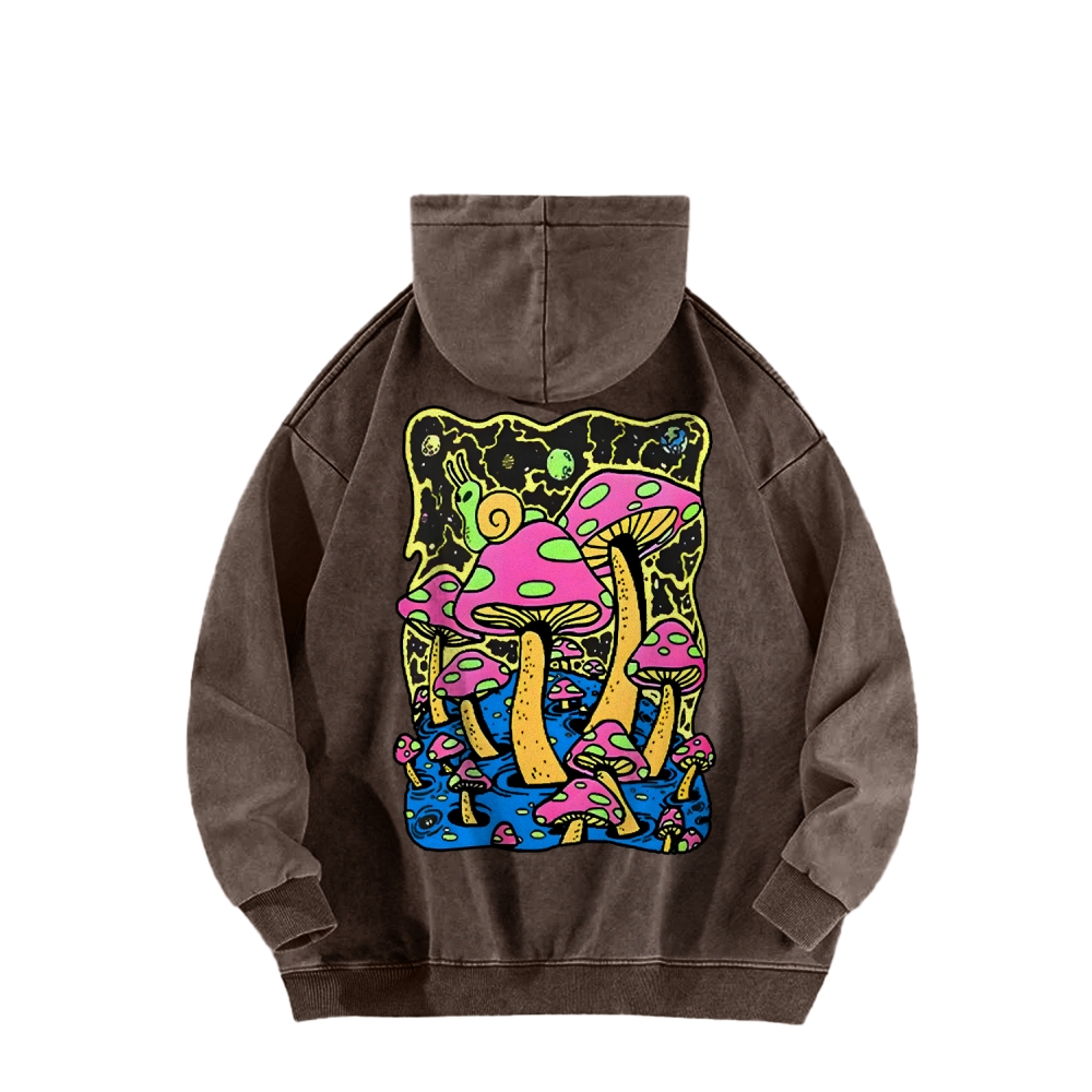 Psychedelic mushroom Front And Back Printing Vintage Washed Hoodie