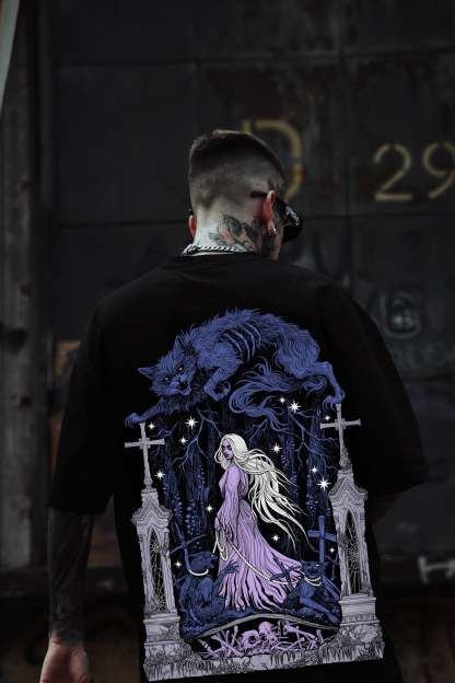 Bring some life (or afterlife) to your wardrobe with the „Return Of The Dead“ T-Shirt. Crafted in collaboration with the remarkable talented Kristina Darmeava, this Shirt beckons you to a realm where spirits roam and secrets lie buried. With subtle whispers and nods to a certain graveyard tale, this artwork pays homage to the mysteries that certain horror stories have woven into our nightmares. It‘s a haunting tribute to the balance between life and death, where the line blurs and the unexpected lingers.