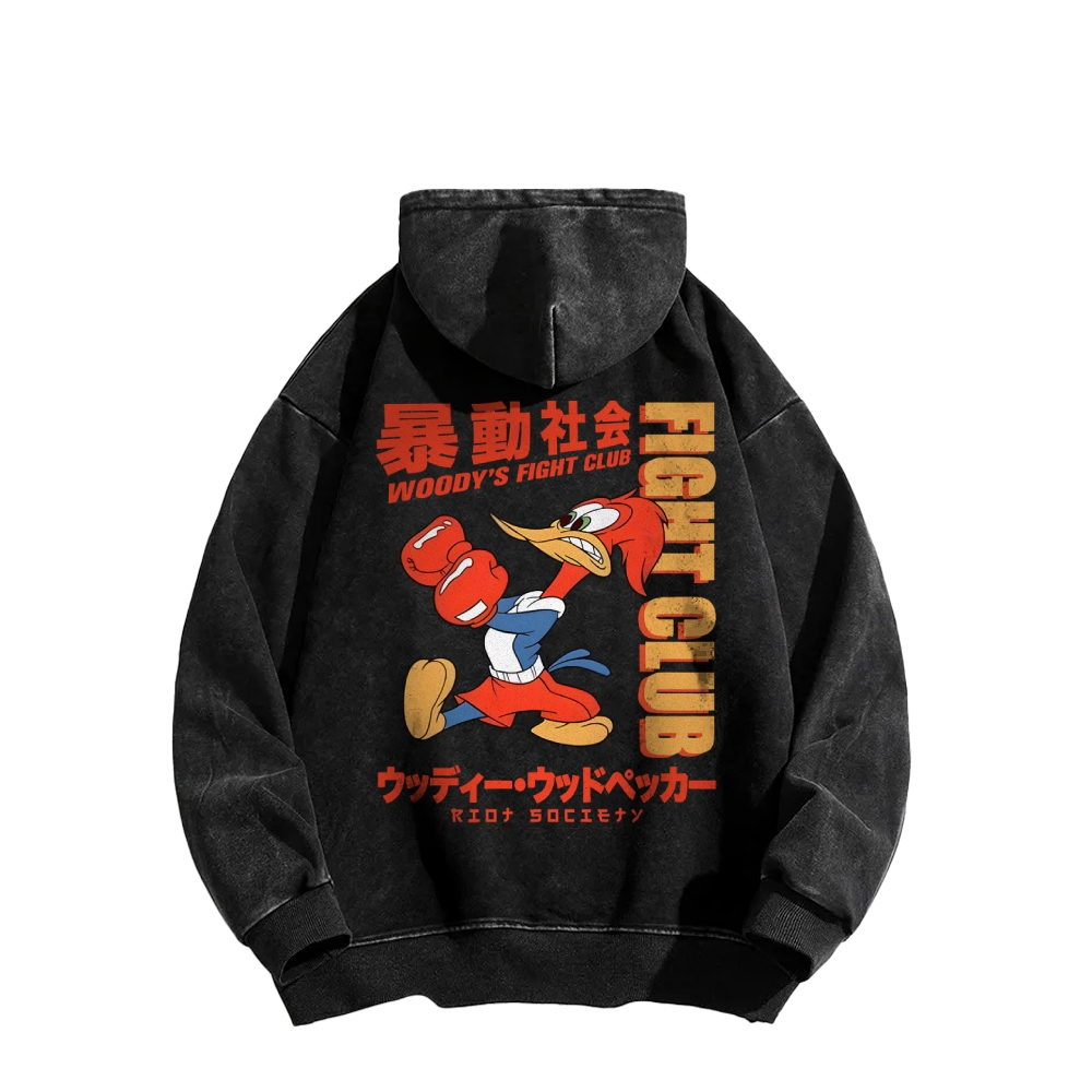 Riot Society Front And Back Printing Vintage Washed Hoodie