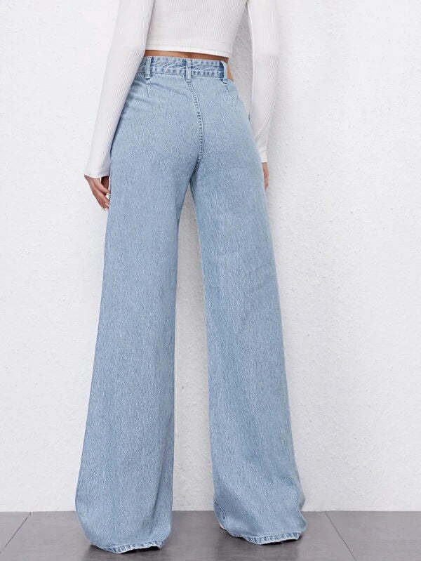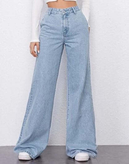 Introducing our must-have Sky Blue Fall Wide Leg High Rise Jeans. Crafted from a soft, washed denim material, these jeans offer a flattering high rise design and trendy wide leg fit. Complete with convenient side cross pockets, these jeans are the perfect addition to your wardrobe for the upcoming season.
