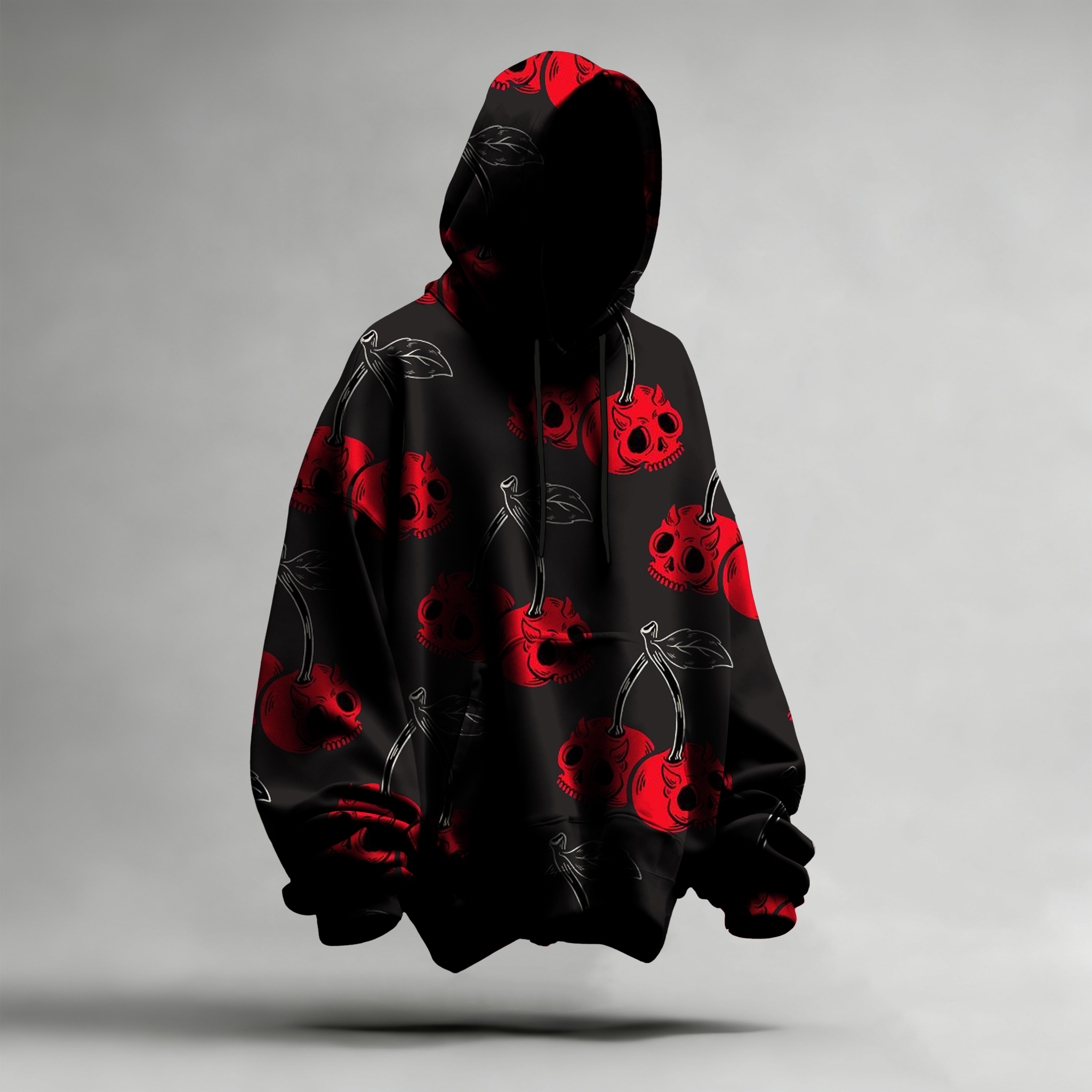 Unisex Cherry Skeleton Skull Art Print Hoodie