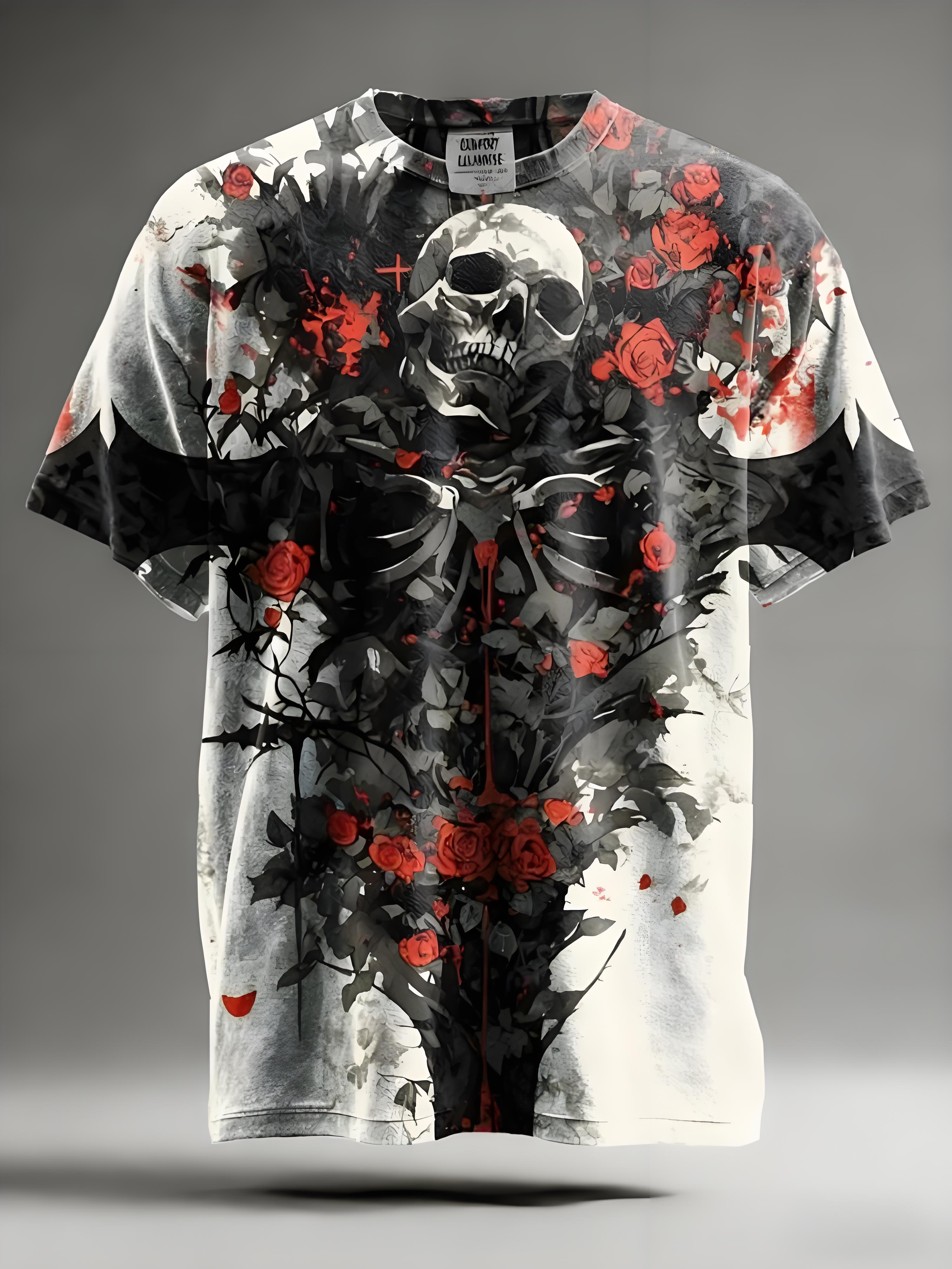 Vintage Dark skull Art Print Casual Short Sleeve T-shirt