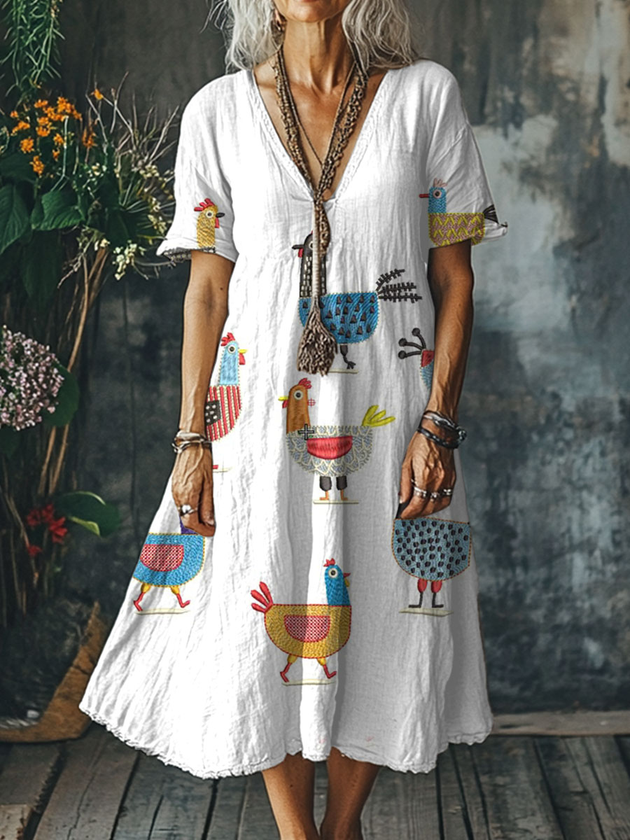 Women's Funny Chicken Art Print Pocket Cotton Dress